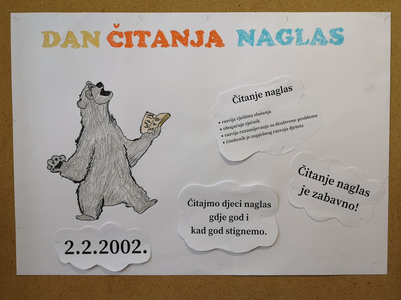Glasno čitanje stavlja knjige u središte pažnje te ih predstavlja kao izvore ugodnog, vrijednog i uzbudljivog iskustva. Djeca, koja od najranije dobi nauče vrijednost knjiga, najčešće postanu vrsni samostalni čitatelji.