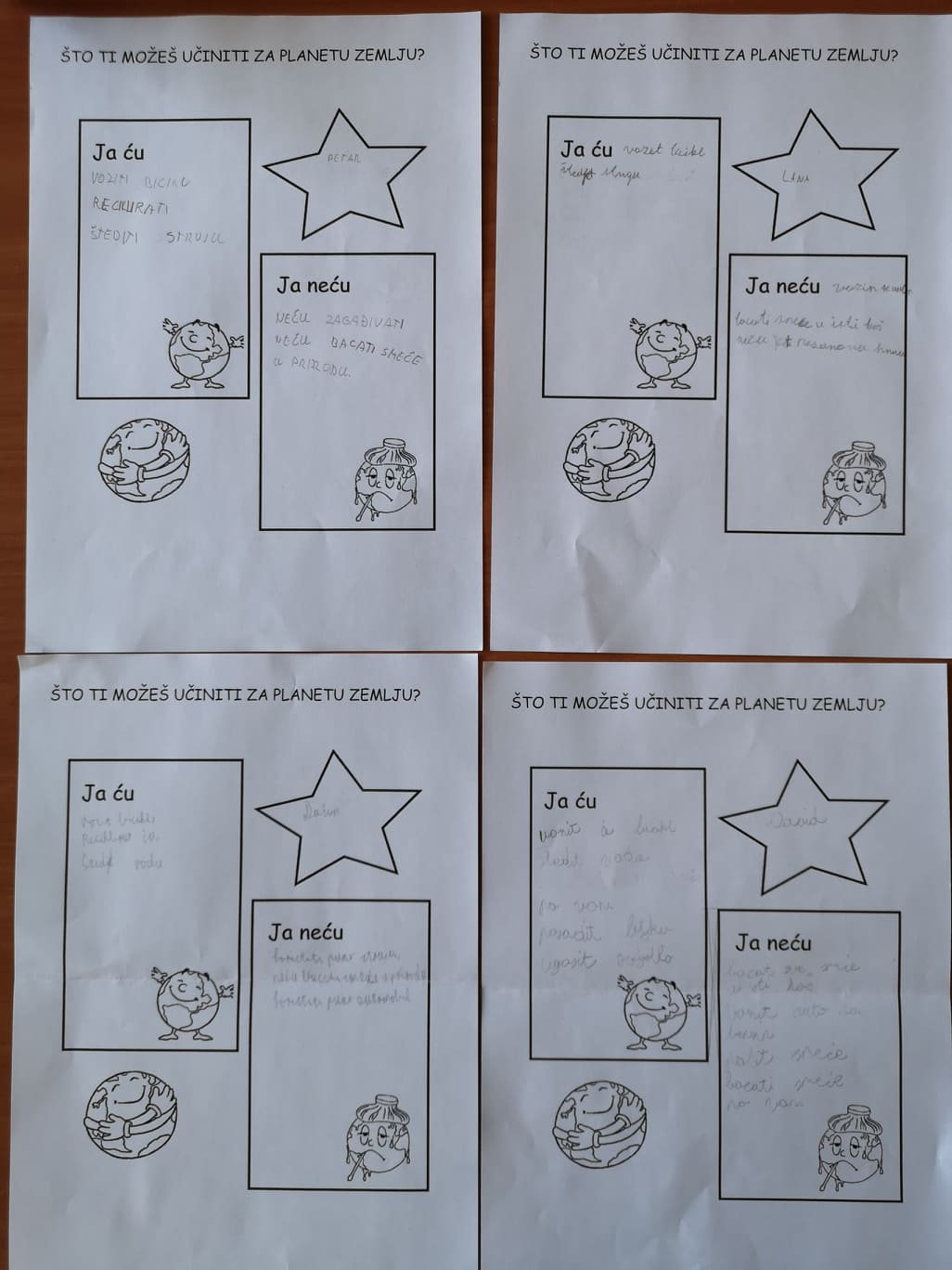 Učenici su napisali što oni mogu učiniti za planet Zemlju.
