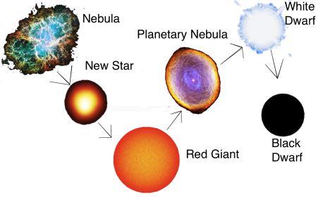 Sve zvijezde rađaju se iz oblak plina i prašine koji se nazivaju maglice. U vreloj zvijezdi započinje nuklearna reakcija (pretvaranjem vodika u helij), nastaju svjetlost i toplina, te druga zračenja koja se ispuštaju u svemir.