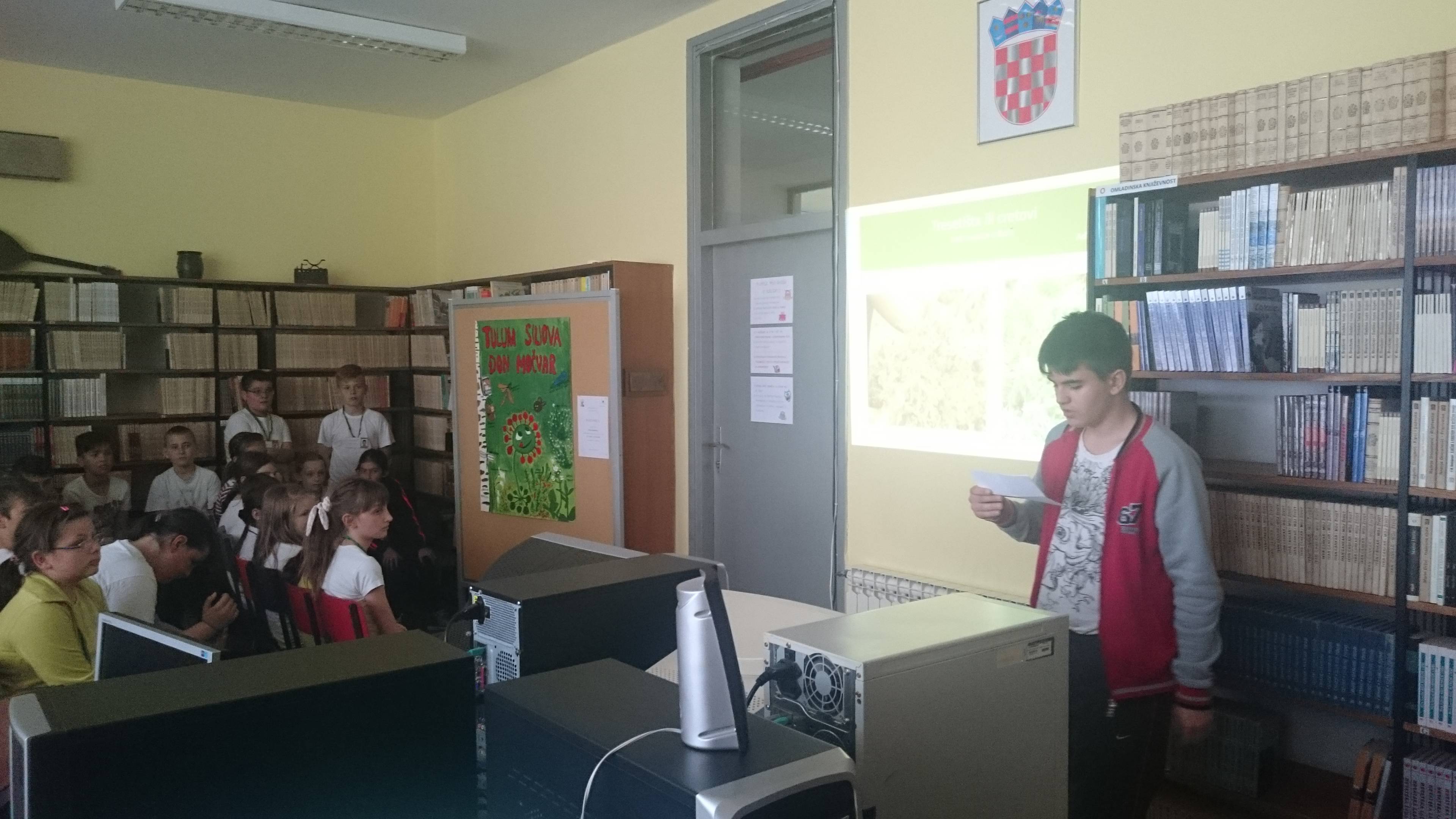 Jasmin je o ugroženim cretovima i biljkama mesožderkama čitao iz časopisa Hrvatske šume, autorica članka je Vesna Pleše.