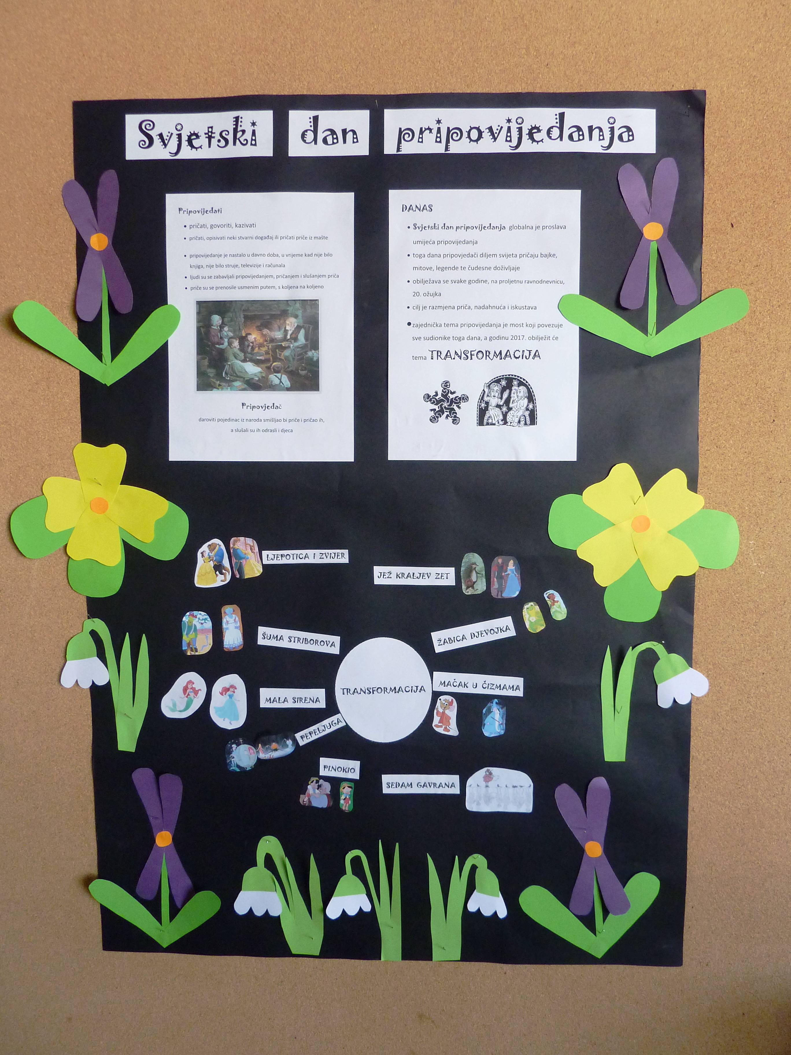 Treća skupina izradila je plakat o transformaciji u bajkama i pričama. Zatim su uz naslove priča i bajki dodali slike likova koji su se transformirali, kao što su Pinokio - iz lutka u dječaka; Ljepotica i zvijer - zvijer u mladića; Sedam gavrana - gavrani u dječake; Mala sirena - sirena u djevojku; Šuma Striborova - guja u djevojku...