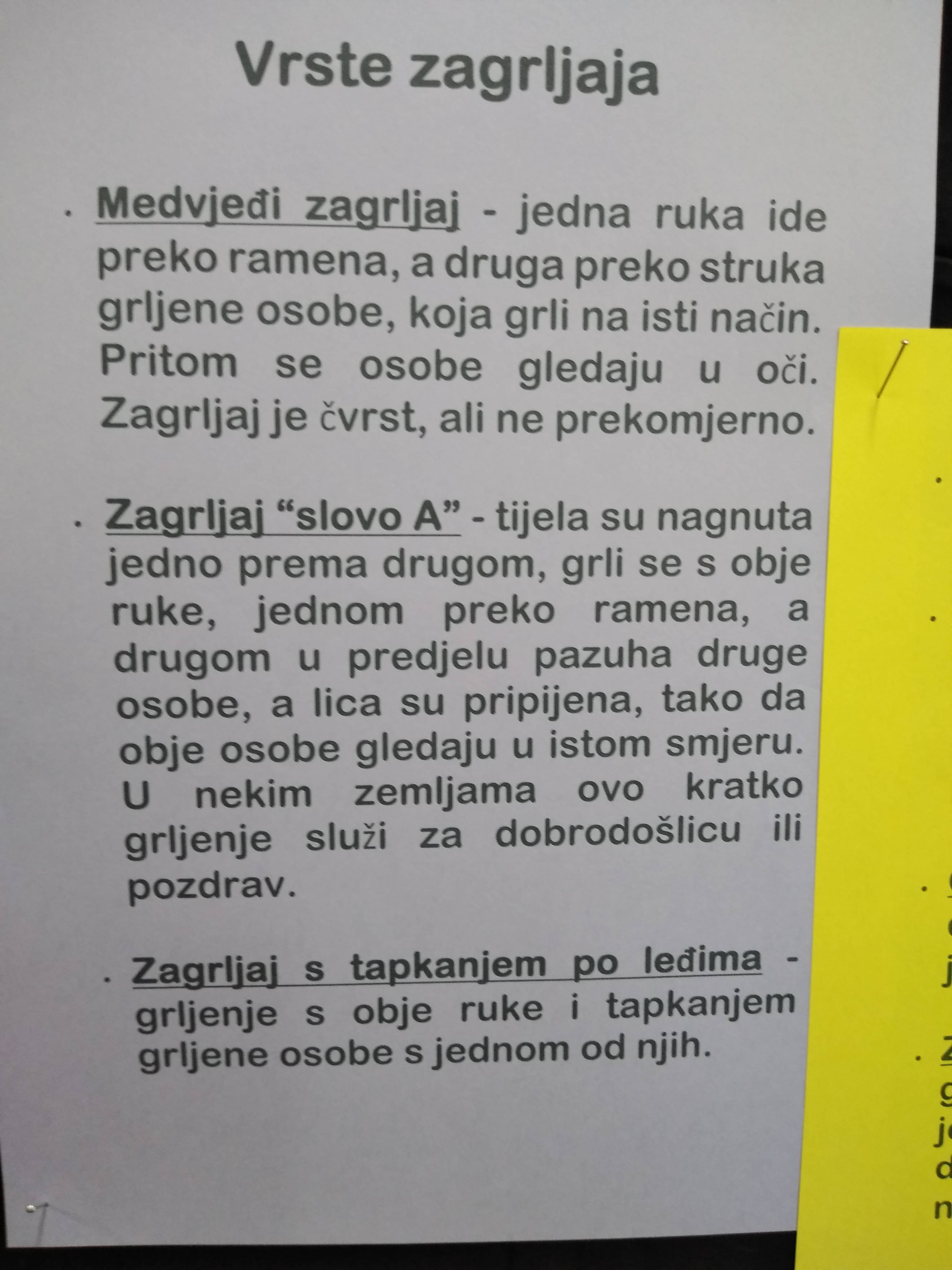 Postoji nekoliko vrsta zagrljaja pa smo se i mi grlili na različite načine.