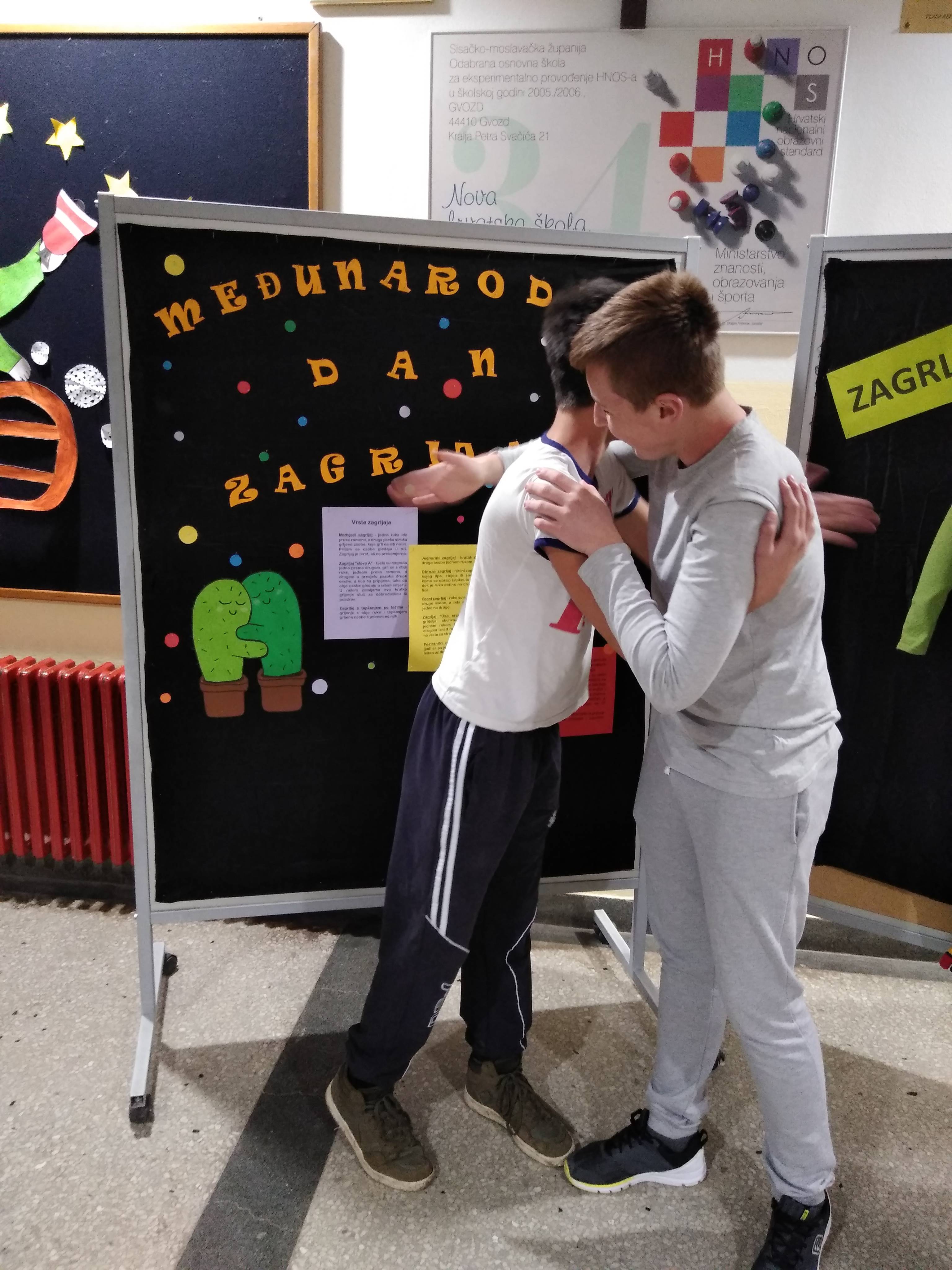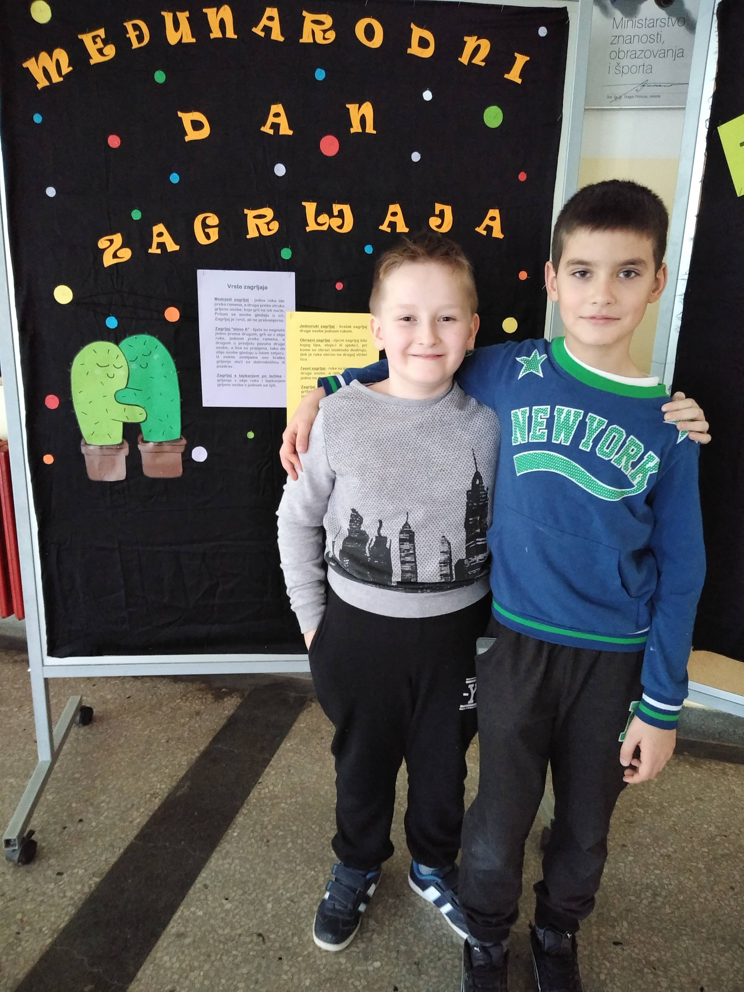 Danas je u našoj školi bilo veselo raspoloženje. U "zagrljenom" tonu smo obilježili Međunarodni dan zagrljaja. Sudjelovali su i veliki i mali, i učiteljice i kuharica i domar.