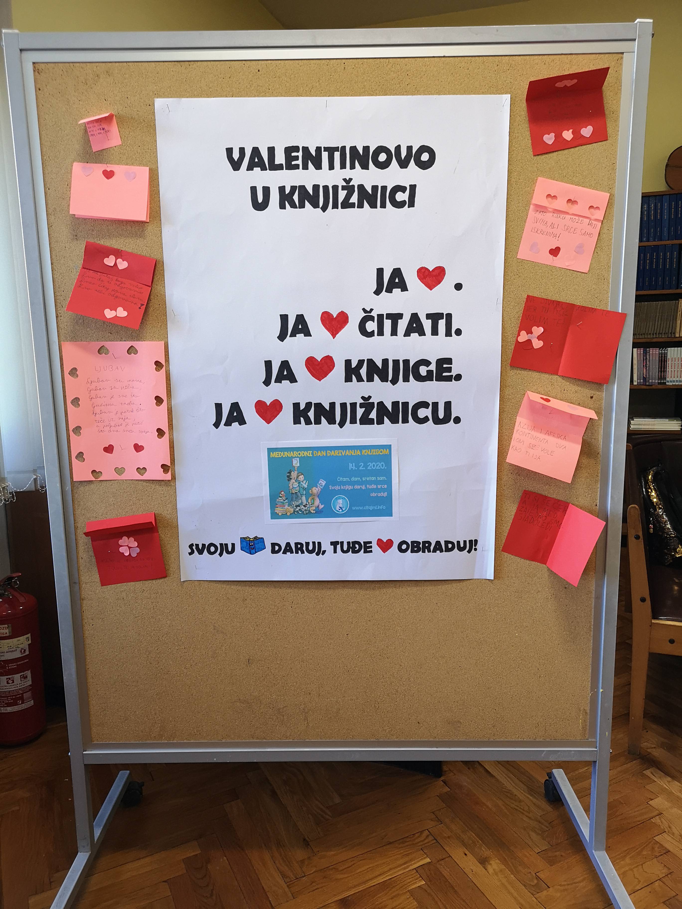 Na dan koji na poseban način slave zaljubljeni, 14. veljače, obilježava se i Međunarodni dan darivanja knjiga. Pokrenula ga je dječja spisateljica Amy Broadmoore 2012. godine, a ubrzo se proširio na brojne zemlje širom svijeta. Njegova je svrha pobuditi ljubav za knjigom i čitanjem, osobito kod djece.