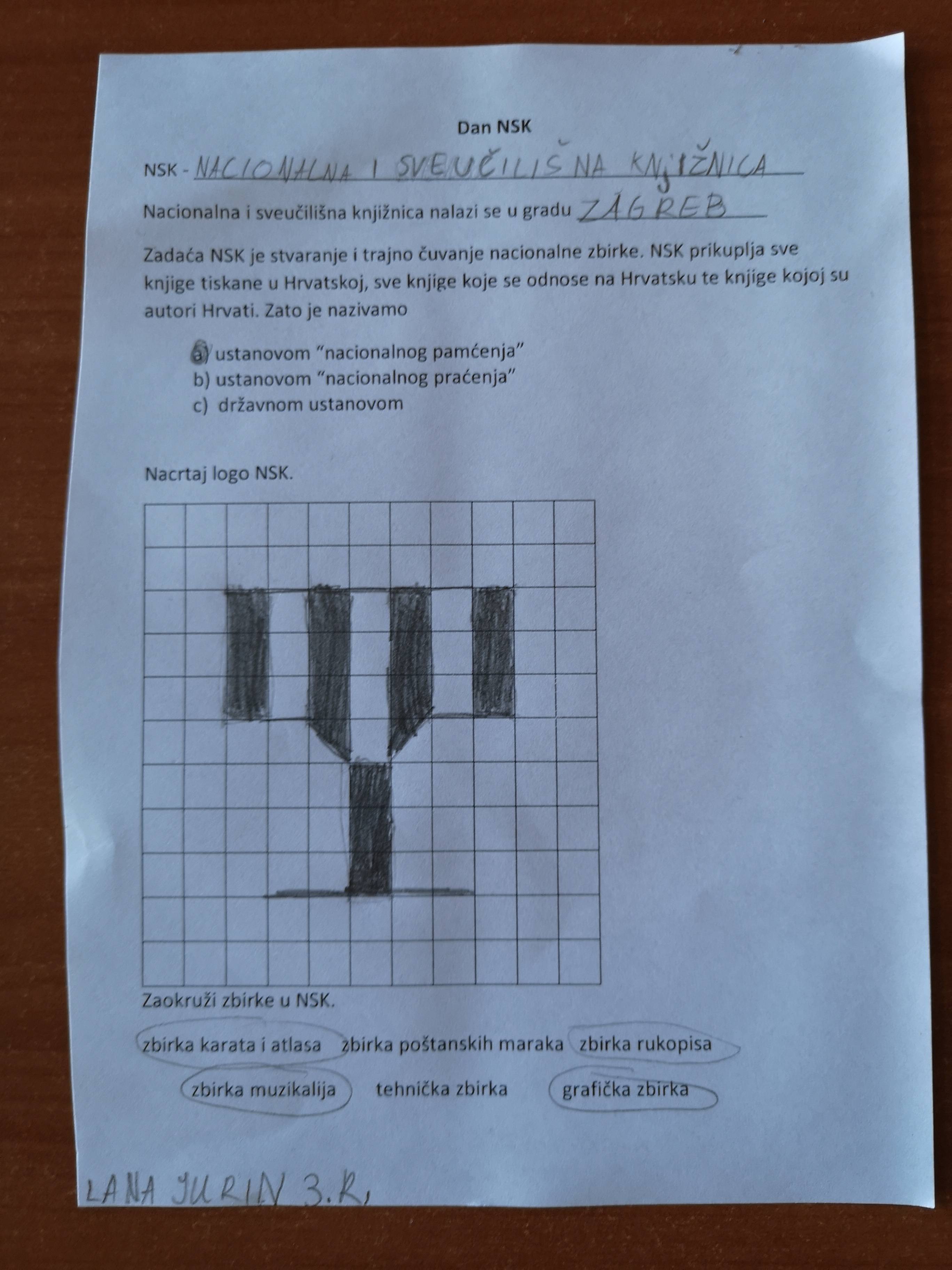 Učenici su nakon gledanja prezentacije o NSK rješavali listić.