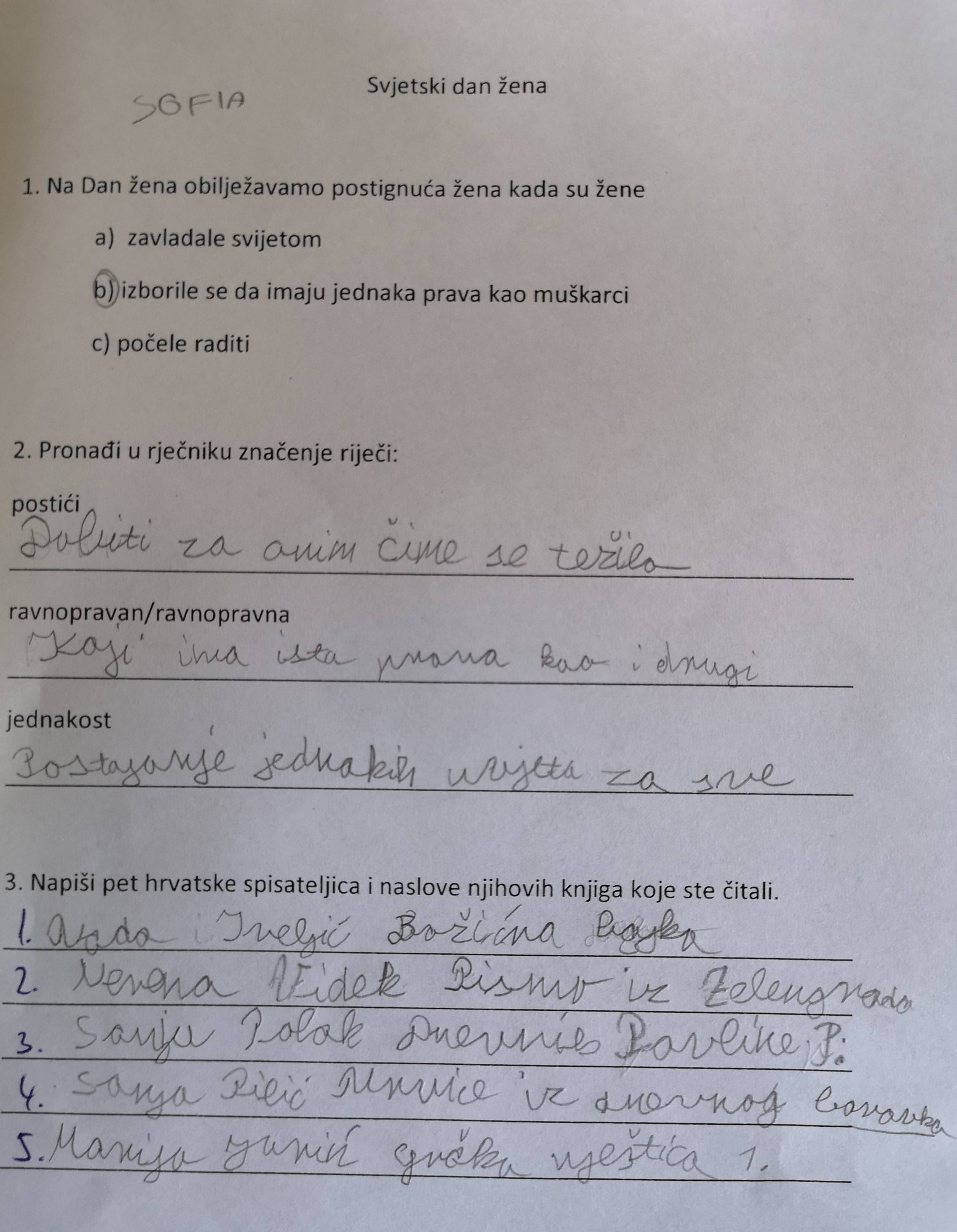 Pogledali su prezentaciju i rješavali listić zašto se obilježava Dan žena.