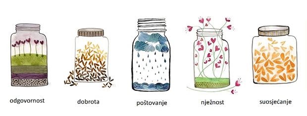 Dragi prijatelji, nudimo vam posudice pune neispričanih priča! Dok milijuni ispričanih priča na ovome svijetu traže svoje čitatelje, mi vam darujemo priče koje traže svojega pisca. Jedan, dva, tri, četiri, pet, šest… Deset. Deset zrna, sjeme priča kojima želimo pošumiti Zemlju. Odgovornost, dobrota, poštovanje, nježnost, suosjećanje, humanost, pravednost, ustrajnost, ljubav, preobrazba. Odaberite sjeme koje želite posaditi u svojoj okolini. Zrno koje odaberete potrebno je posaditi u pravu okolinu, upravo tamo gdje takvih priča manjka, prikladno zalijevati i o njemu brinuti da bi ono izraslo u pravu, otpornu i korisnu priču. Manjka li u vašem razredu pravednosti? Uzgojite je! Nedostaje li poštovanja u vašim odnosima s prijateljima? Njegujte ga! Je li vaš grad gladan suosjećanja? Zalijevajte ga da bi izraslo u veliko i snažno stablo.
