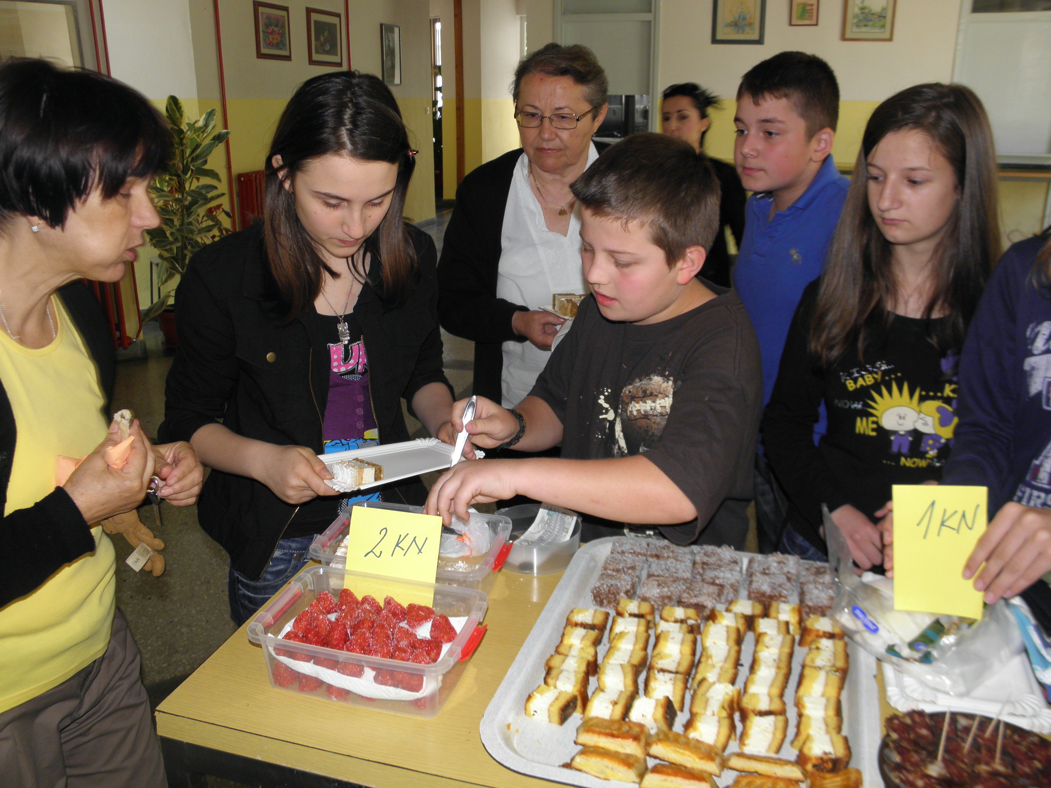 Nakon čega su svi prisutni mogli za simboličan iznos kupiti proizvode naših učenika. Marljive ručice naših učenika, roditelja i učiteljica pripremile su kolače, palačinke, rabljenu robu.