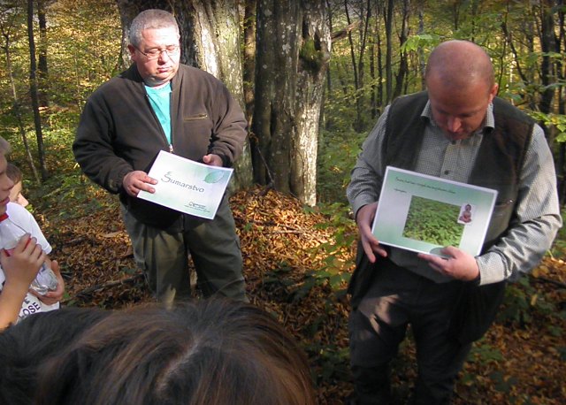 Tijekom boravka u šumi gospodin Predrag upoznao je učenike sa zanimanjem šumar, što radi, koje su njegove obveze i dužnosti prema šumi. Uz slikovni materijala ispričao je učenicima o prirodnim procesima koji se događaju u šumi.