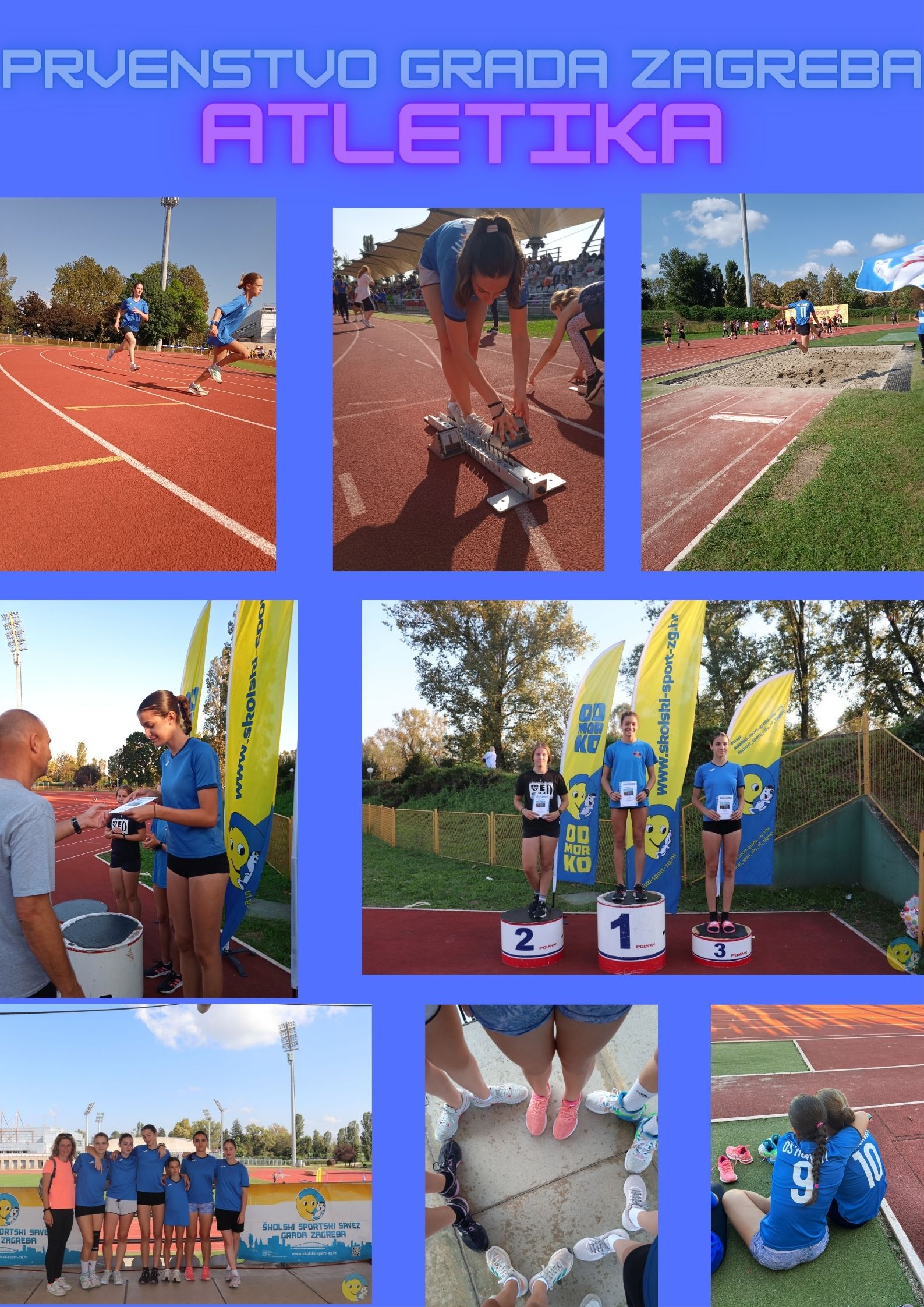 Prvenstvu Grada Zagreba u atletici za djevojčice 7. i 8. razreda osnovnih škola održalo se 26. rujna 2023. godine na Atletskom stadionu sportskog parka Mladost. Našu školu su predstavljale učenice Eva Peranić (6.razred), Eva Dudić, Lorena Ivanovska, Mara Mandić, Ana Vanić i Bela Steinocher (8.razred).