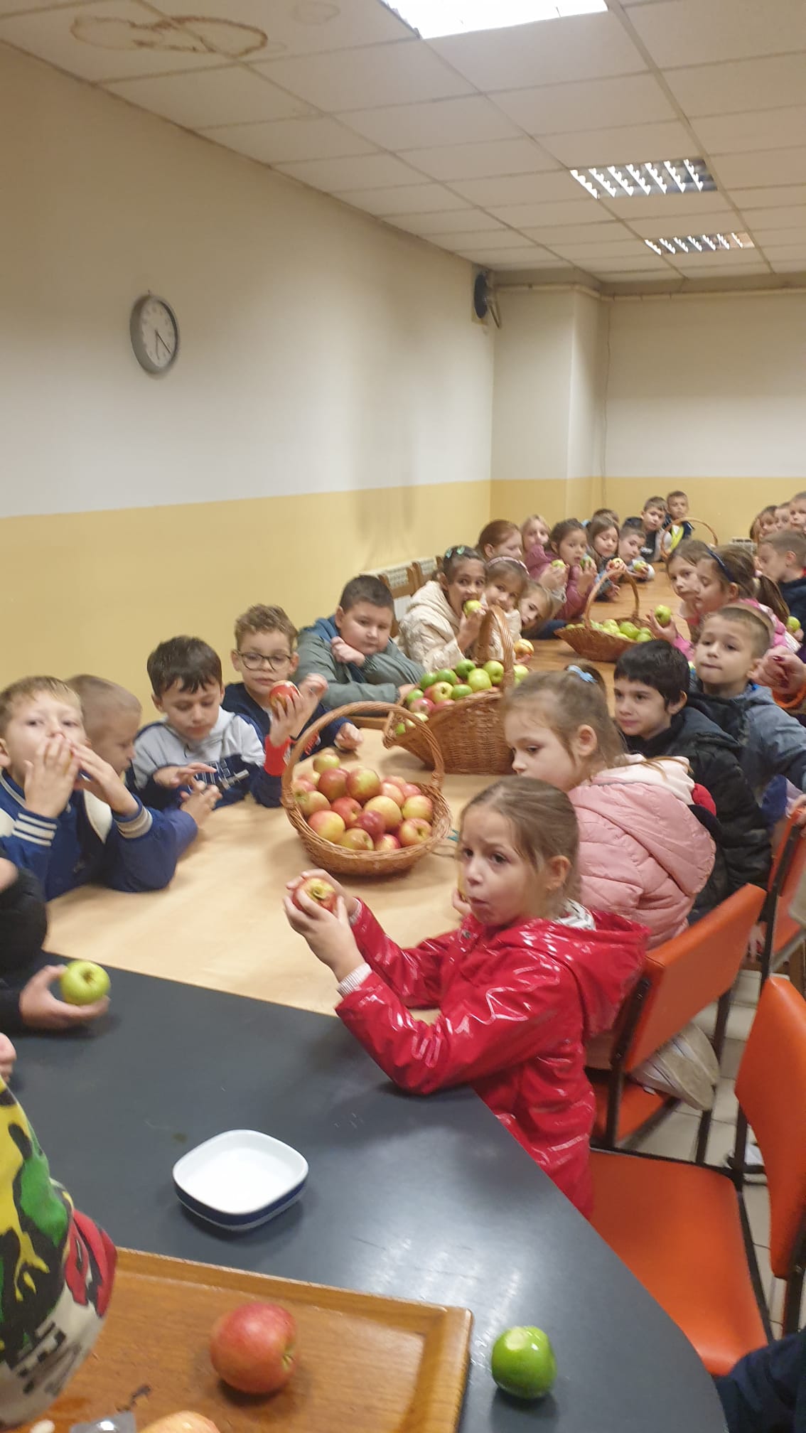 Prvašiće i njihove učiteljice je najviše zanimao dio njihovog poslovanja koji se odnosi na sortiranje, skladištenje i pakiranje svježeg voća, konkretno jabuka jer je i današnji radni dan u školi bio posvećen jabukama.