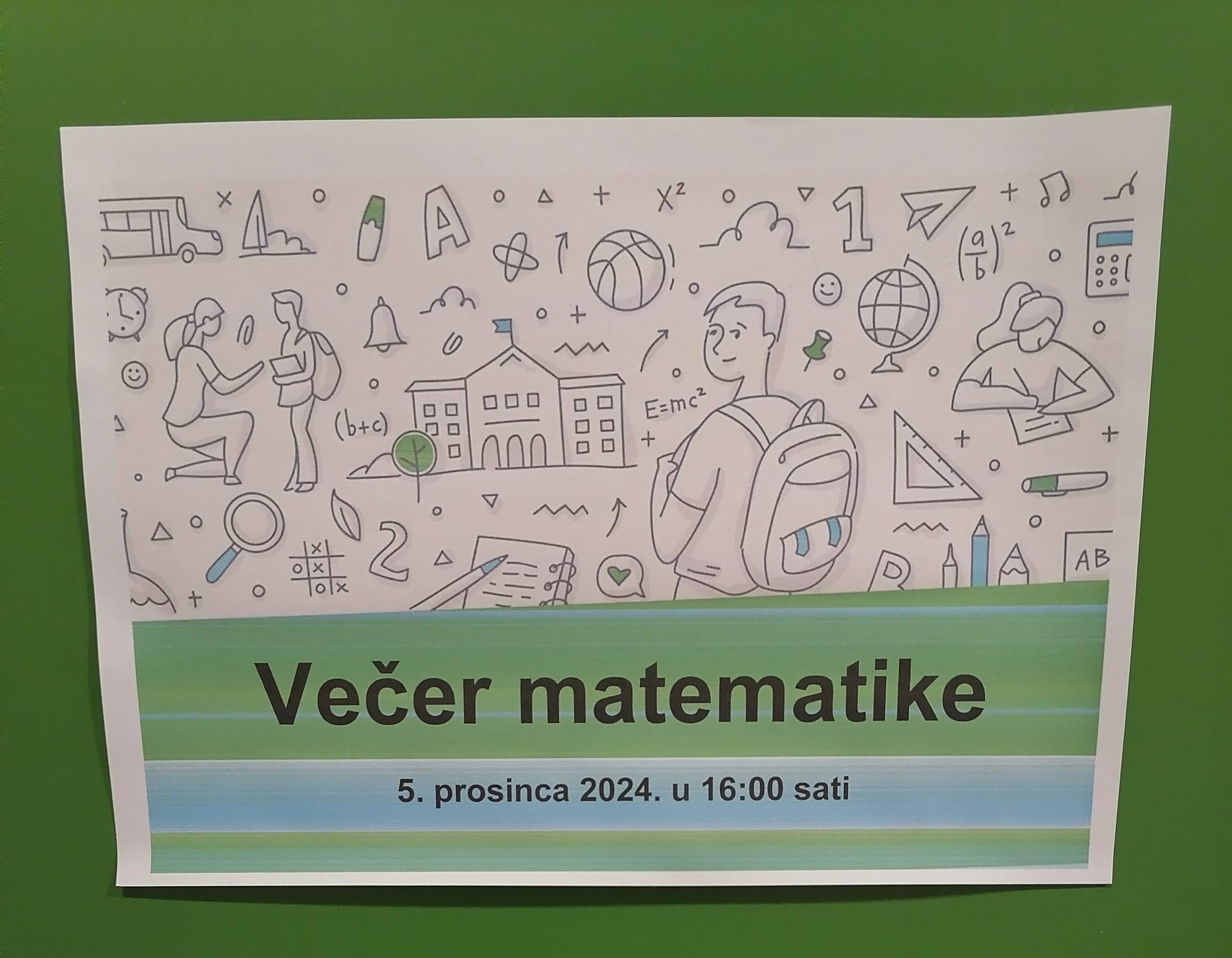 Večer matematike je zamišljena kao skup interaktivnih radionica koje potiču izgradnju pozitivnog stava učenika prema matematici. Sudjelovanje u zabavnim aktivnostima otkriva često zaboravljenu – zabavnu stranu matematike, stvara nove ideje o tome što matematika jest i čime se bavi te dokazuje da matematičke probleme i bez da smo svjesni vlastitog talenta, svakodnevno svi uspješno rješavamo.