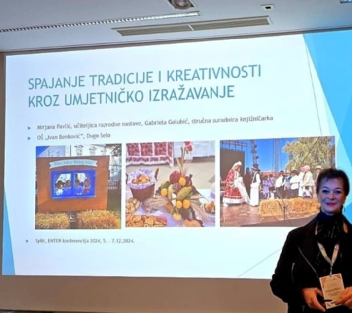 Od 5. do 7. prosinca 2024. Split je postao središte inovativnih pristupa u obrazovanju, ugostivši četvrtu Enter konferenciju, međunarodni događaj koji okuplja stručnjake, edukatore i vizionare s ciljem unaprjeđenja obrazovnog sustava. Ove godine, ponosno smo predstavili našu školu kroz izlaganje koje su održale naša učiteljica razredne nastave Mirjana Pavlić i stručna suradnica knjižničarka Gabriela Golubić. Tema prezentacije, “Povezivanje tradicije i kreativnosti kroz umjetnički izričaj”, zainteresirala je prisutne sudionike i stručnu javnost.