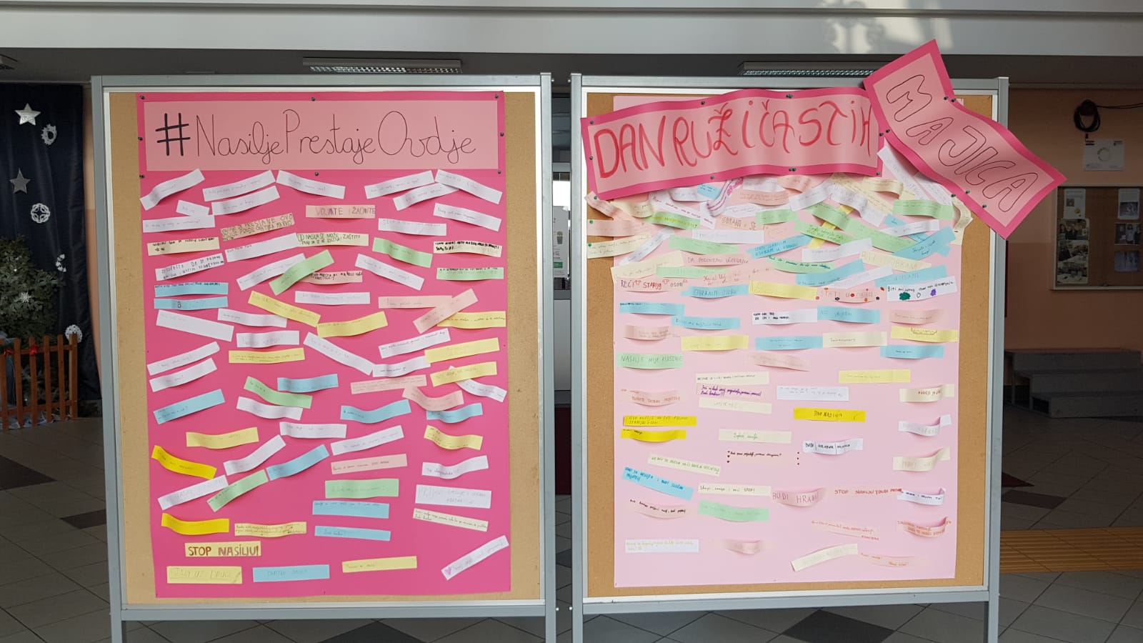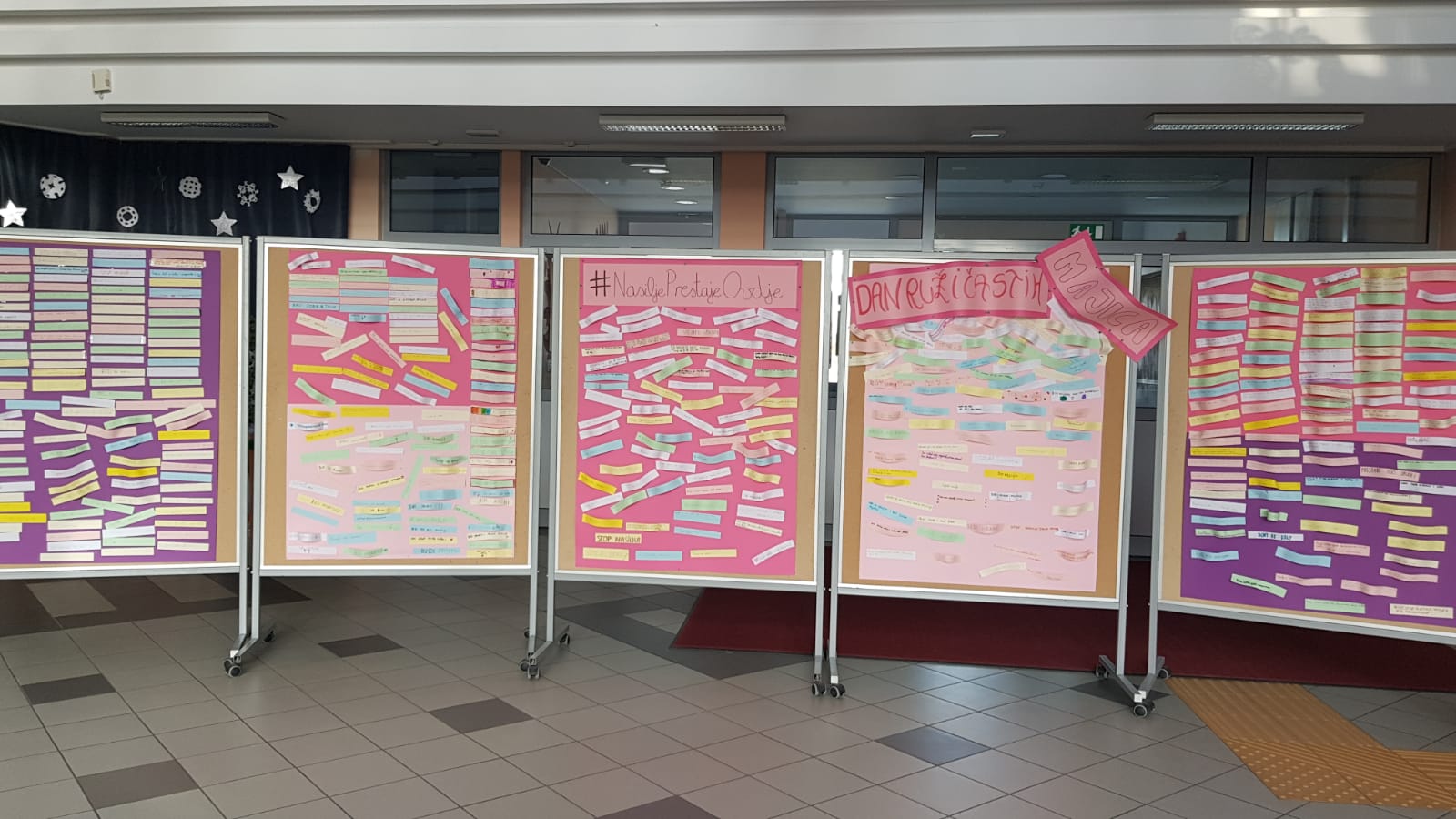 Naša škola obilježila je 24. veljače 2021. godine Nacionalni dan prevencije vršnjačkog nasilja ( Dan ružičastih majica ) koji se obilježava svake godine posljednje srijede u mjesecu veljači. Na satima su učenici pogledali edukativni film i imali su priliku napisati poruke protiv nasilja. U predvorju škole nalazili su se plakati na koje su učenici lijepili svoje poruke. Danas su gotovo svi, učenici i djelatnici, bili u ružičastim majicama u znak podrške prevenciji vršnjačkog nasilja, ali svi zajedno moramo raditi na tome da u našoj školi mir, prijateljstvo i suradnja budu vrijednosti koje njegujemo svaki dan i da svi glasno kažemo: NASILJE PRESTAJE OVDJE!