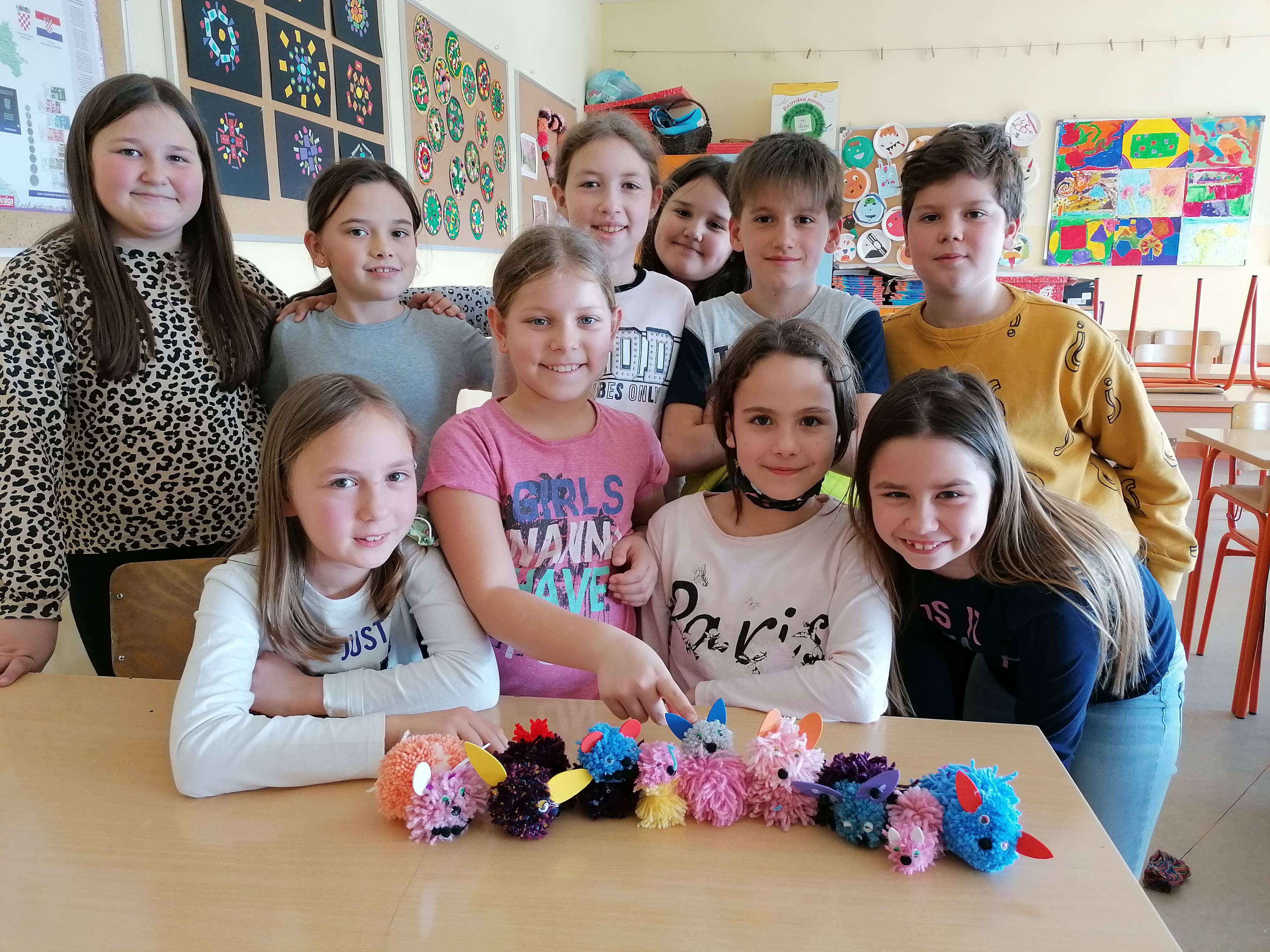 Učenici 3.c razreda koji pohađaju izvannastavnu aktivnost domaćinstvo su s učiteljicom Karolinom Rigljan radili životinjice od vune. Vrućim ljepilom su sastavljali pomponiće i lijepili oči, uši i repiće. Vesela družina ljubimaca od danas krasi njihovu učionicu.
