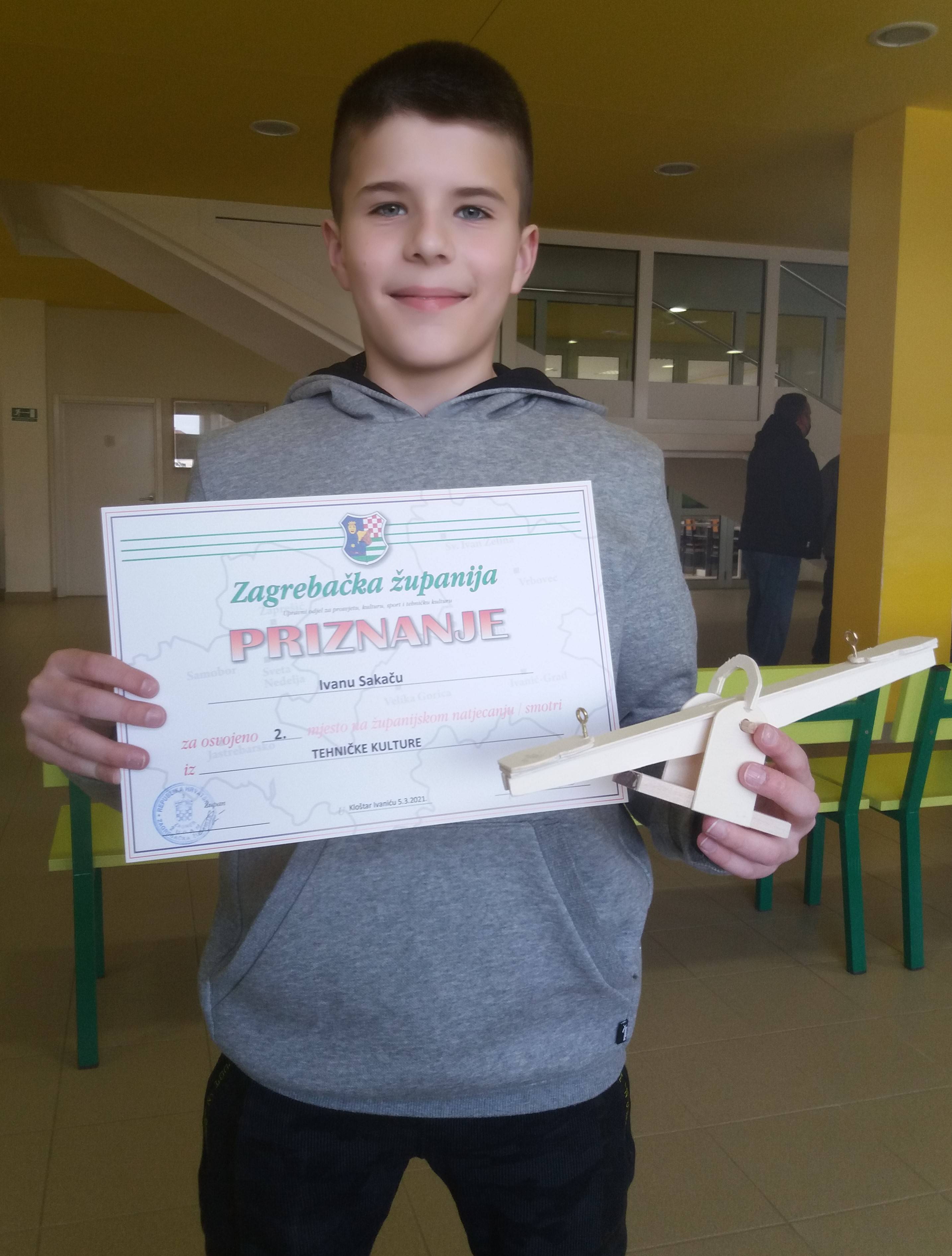 Županijsko Natjecanje iz tehničke kulture održano je 5. ožujka 2021. u Kloštar Ivaniću u OŠ braće Radića. Pod vodstvom učitelja Borislava Jurića našu školu predstavljao je učenik Ivan Sakač (6.c). Natjecao se u kategoriji modelarstvo uporabnih tehničkih tvorevina i ostvario 2. mjesto. Time je ponovio uspjeh od prošle godine kada je također bio drugi. Čestitamo učeniku i mentoru na postignutom uspjehu.