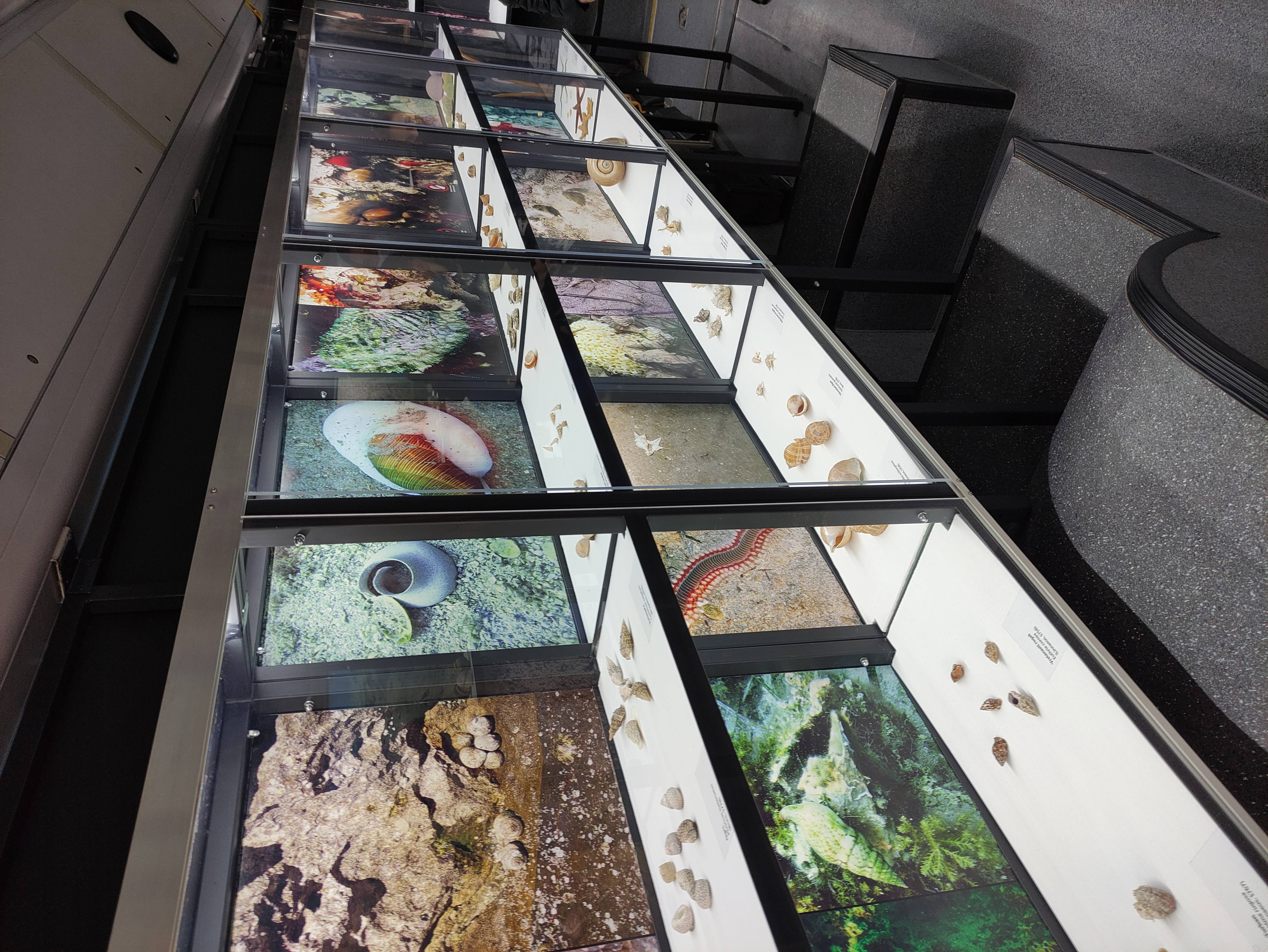 Učenici su mogli vidjeti spužve, koralje, glavonošce, školjkaše, rakove, puževe i bodljikaše. U izložbi je prikazano i šest zakonom strogo zaštićenih životinjskih vrsta: školjkaša (periska, prstac), puževa (bačvaš, zipka), koralja (crveni i busenasti koralji). Strogo zaštićene vrste organizama se po zakonu ne smije namjerno hvatati ili ubijati u njihovu prirodnom području.
