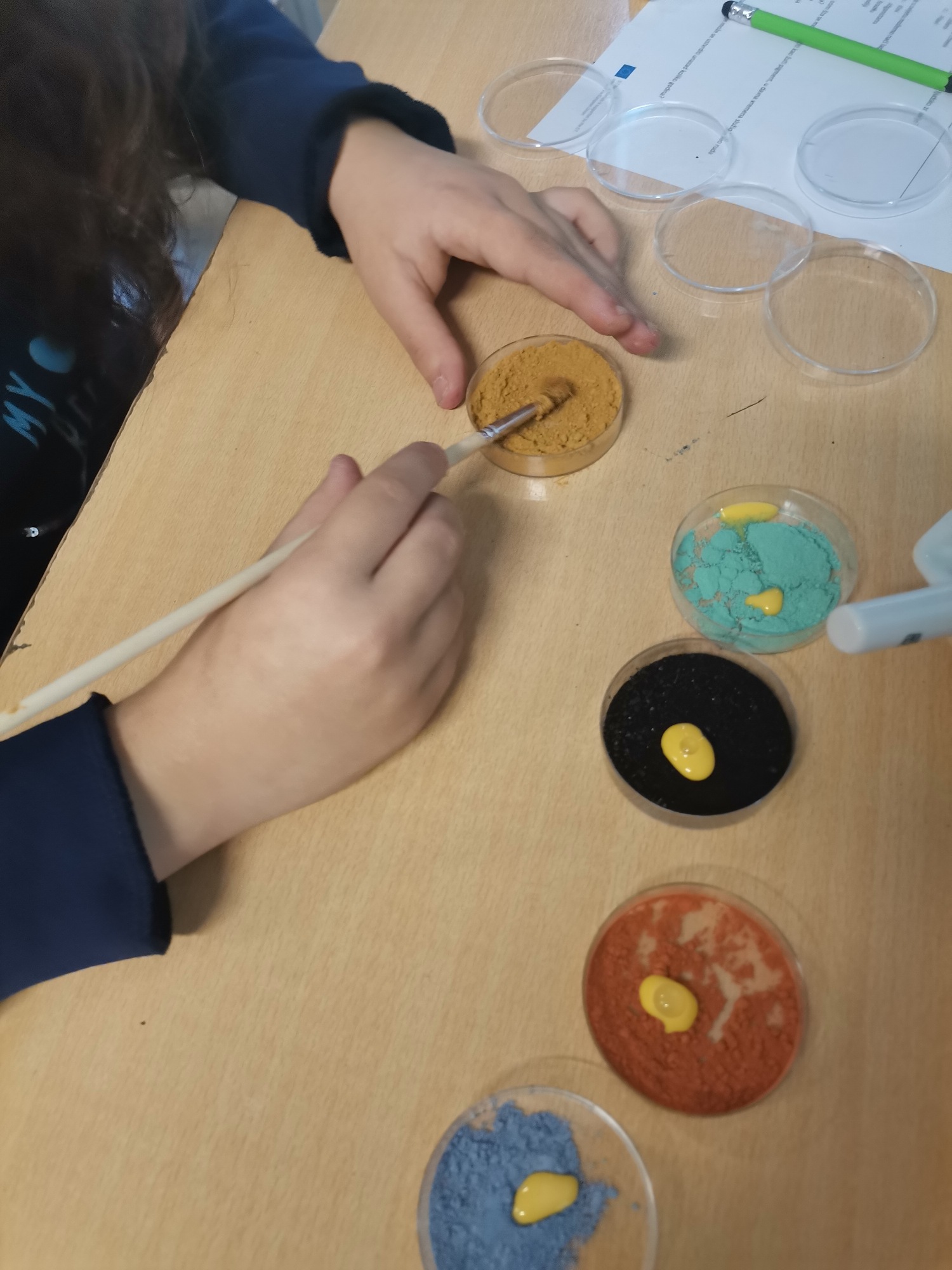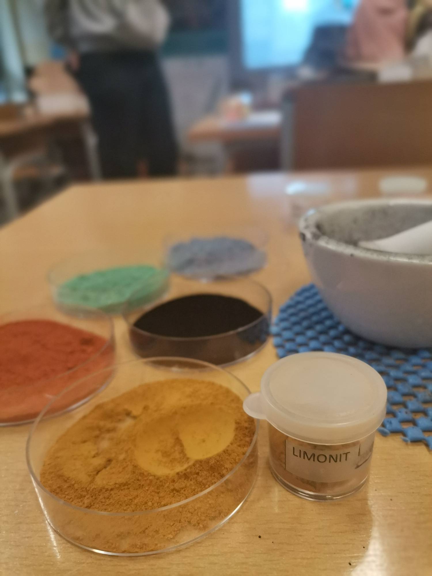 U utorak, 14. prosinca 2021. učenici 8.a razreda su na satu geografije sudjelovali u radionici o dobivanju prirodnih boja iz minerala. Radionicu su pripremili i vodili Ana Brcković i Marko Cvetković sa Rudarsko-geološko naftnog fakulteta Sveučilišta u Zagrebu, autori RM@Art toolkit-a koji je razvijen u sklopu projekta RM@Schools ESEE. Ishodi učenja radionice su: razlikovati različite kritične materijale/minerale/rude koje se mogu koristiti za pripremu pigmenta; opisati proces pripreme boje iz kritičnih materijala; ukazati na potencijalnu primjenu kritičnih materijala u svakodnevnom životu.