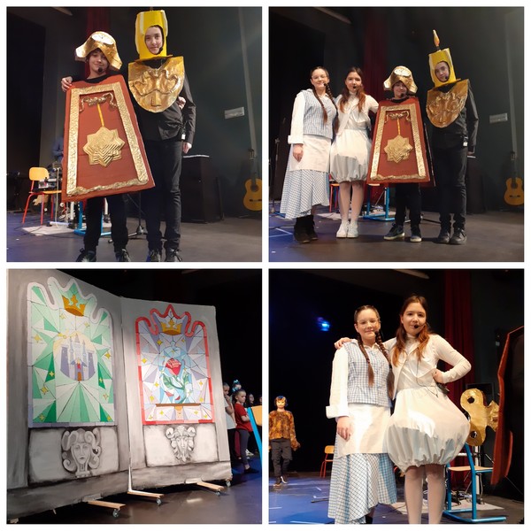 Zbor, plesna skupina i solisti izveli su song Naš si gost iz mjuzikla Ljepotica i Zvijer. Svojom su odličnom i uigranom izvedbom na pozornici dočarali začarani dvorac u kojem pribor za jelo pleše, čajnik (Marija Dobra) i svijećnjak (Roko Tokalić) pjevaju, sat (Lovro Ivaniček) brine se što će ljutita Zvijer (Max Šola) reći na razigranu poslugu, Ljepotica (Lorena Brus) sretno pijucka čaj i uživa u predstavi pripremljenoj samo za nju. Čarolija s pozornice pretvorila se u sreću i uzbuđenje koja se ocrtavala na licima malenih izvođača. A to je samo uvod u ono što tek slijedi…cjeloviti mjuzikl koji ćete imati prilike vidjeti uskoro!