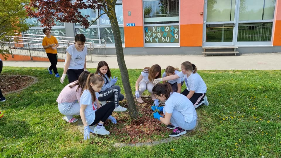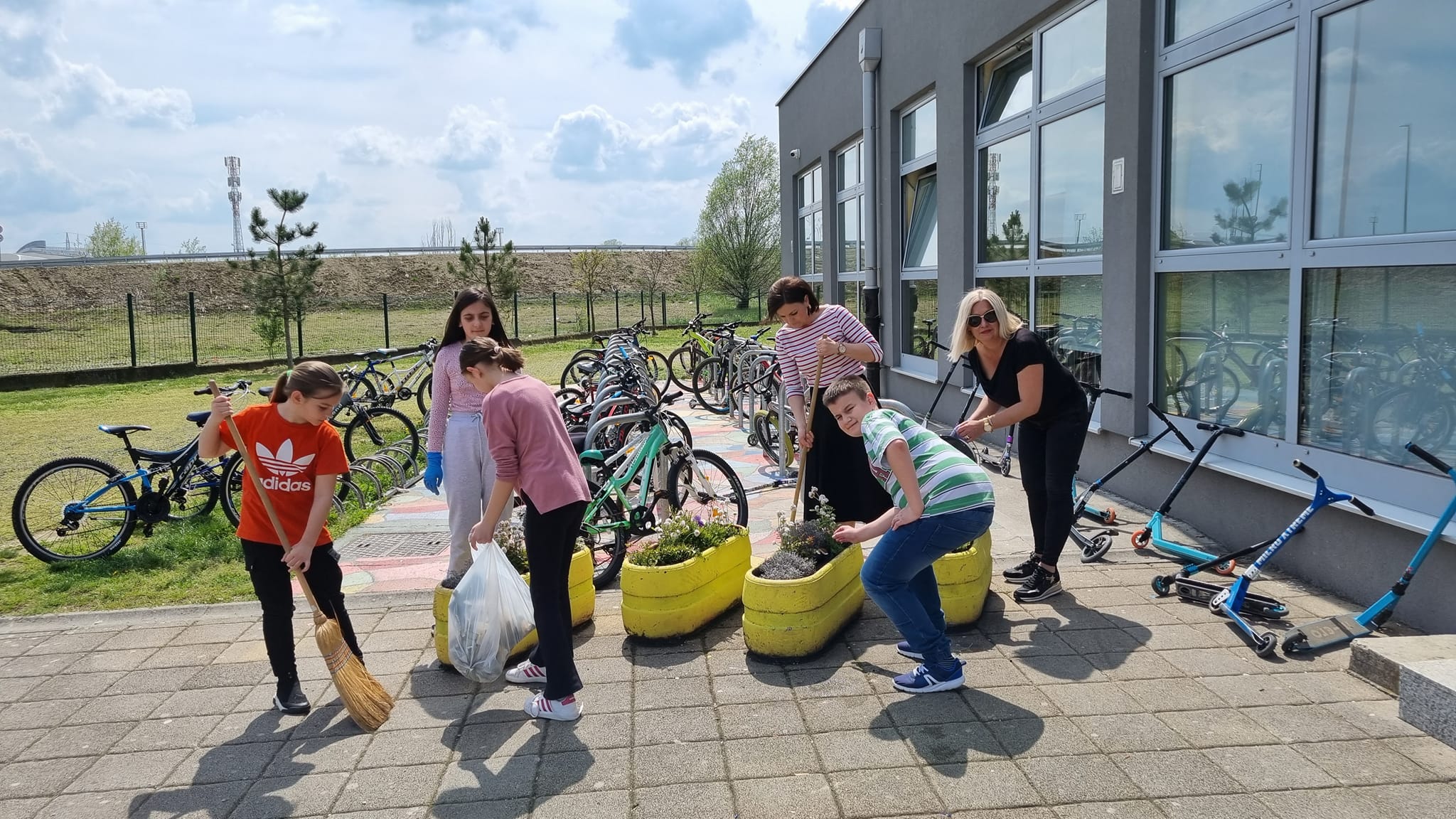 Povodom Dana planeta Zemlje koji se obilježava 22.4., učenici 4.c i 4.d razreda, njihove učiteljice Željka Šoštarčić i Marija Gorički, knjižničarka Gabriela Golubić te tajnica škole Suzana Kralj Šantić organizirali su akciju uređenja okoliša i sadnje cvijeća. Dan planeta Zemlje obilježava se 22. travnja kako bi se jačala svijest ljudi prema prirodnom okolišu. Različitim događanjima i akcijama nastoji se skrenuti pozornost ljudi na opasnost koja prijeti životu na Zemlji zbog porasta globalnog onečišćenja te ih potaknuti da osvijeste problem zagađenja okoliša.