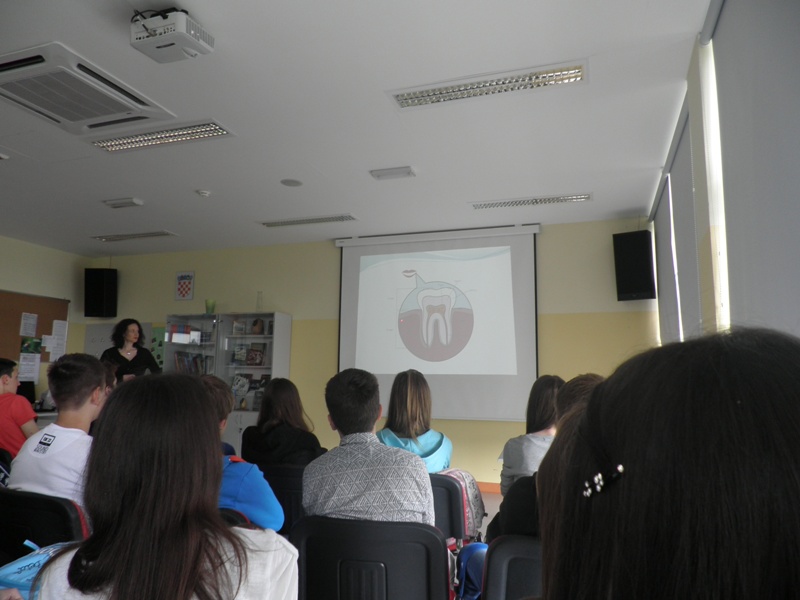 Doktorica nam je, uz popratnu prezentaciju, objasnila od čega se zub sastoji, do kakvih problema može doći ako ne održavamo higijenu zubi i kako to sve spriječiti. Osmaši su na kraju postavljali mnoga pitanja na koja je doktorica rado odgovarala. Na kraju predavanja zahvalili smo se dr. Runac na posjetu i zamolili je da i slijedeće godine održi predavanje na istu temu budućim osmašima.