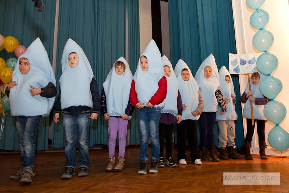 Učenici 2.b razreda maskirali su se u kapljice vode i izveli odličnu eko recitaciju o vodi.