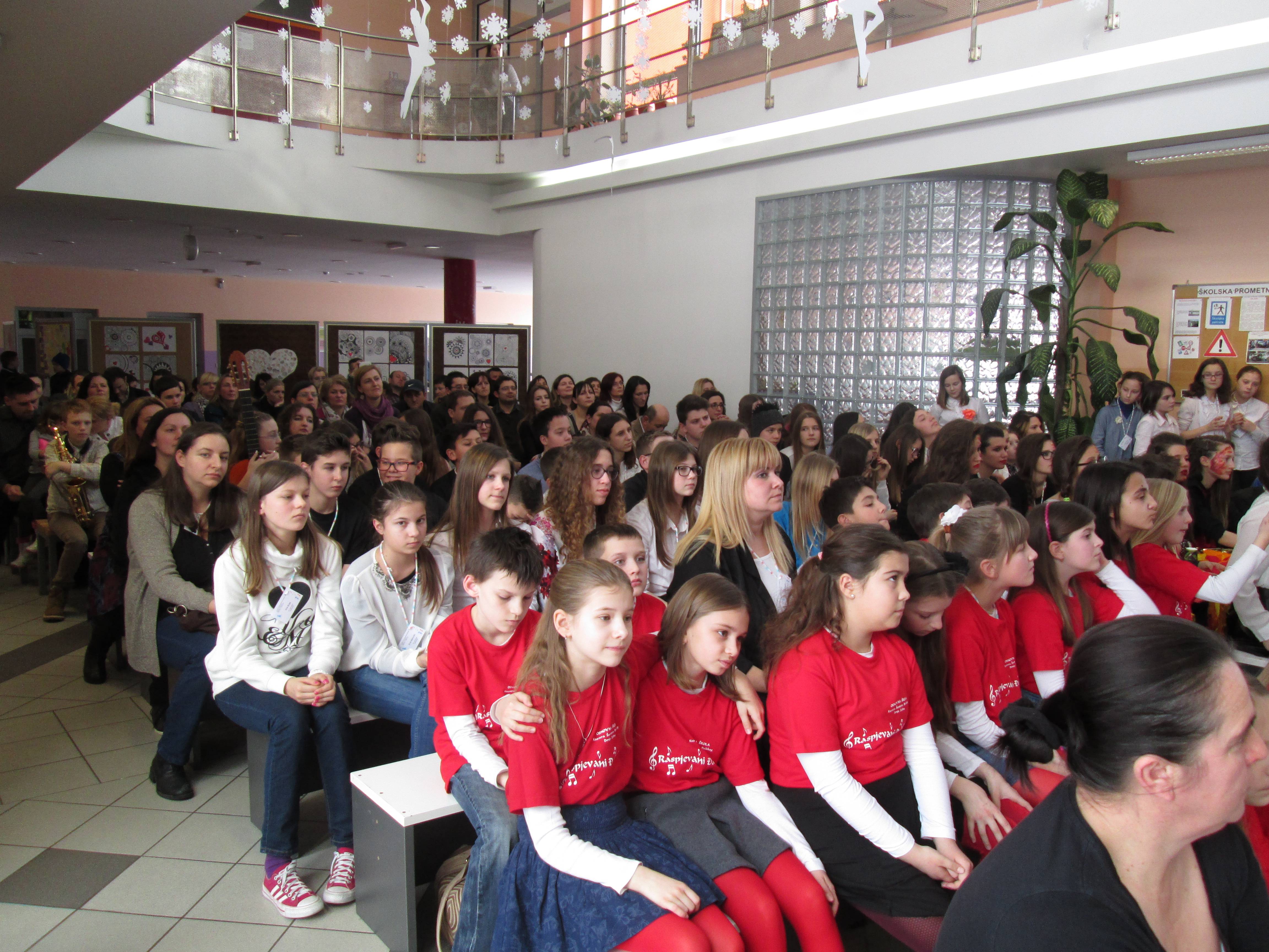U organizaciji Glazbene udruge Opus u subotu, 7. veljače 2015. godine, u našoj školi je održan izvedbeni dio 1. Festivala dječjeg glazbenog stvaralaštva. Riječ je o jedinstvenoj manifestaciji u kojoj su sudjelujelovali učenici osnovnih općeobrazovnih škola. U sklopu Festivala izvedeno je 13 novonastalih skladbi čiji su tekstopisci, skladatelji i izvođači učenici od 4. do 8. razreda. Skladbe su napisane za različite instrumentalne i vokalno instrumentalne sastave. Tematika i glazbeni žanr bili su slobodni pa smo tako na programu imali i instrumentalne solo točke, orkestre, vokalne skupine i nekoliko školskih rock bandova. Podsjetimo, svaka škola je trebala do 20. prosinca 2014. poslati notne i zvučne zapise svojih novonastalih skladbi, a nakon toga je prosudbeno povjerenstvo odabralo skladbe koje će se svirati uživo na izvedbenom dijelu Festivala.
