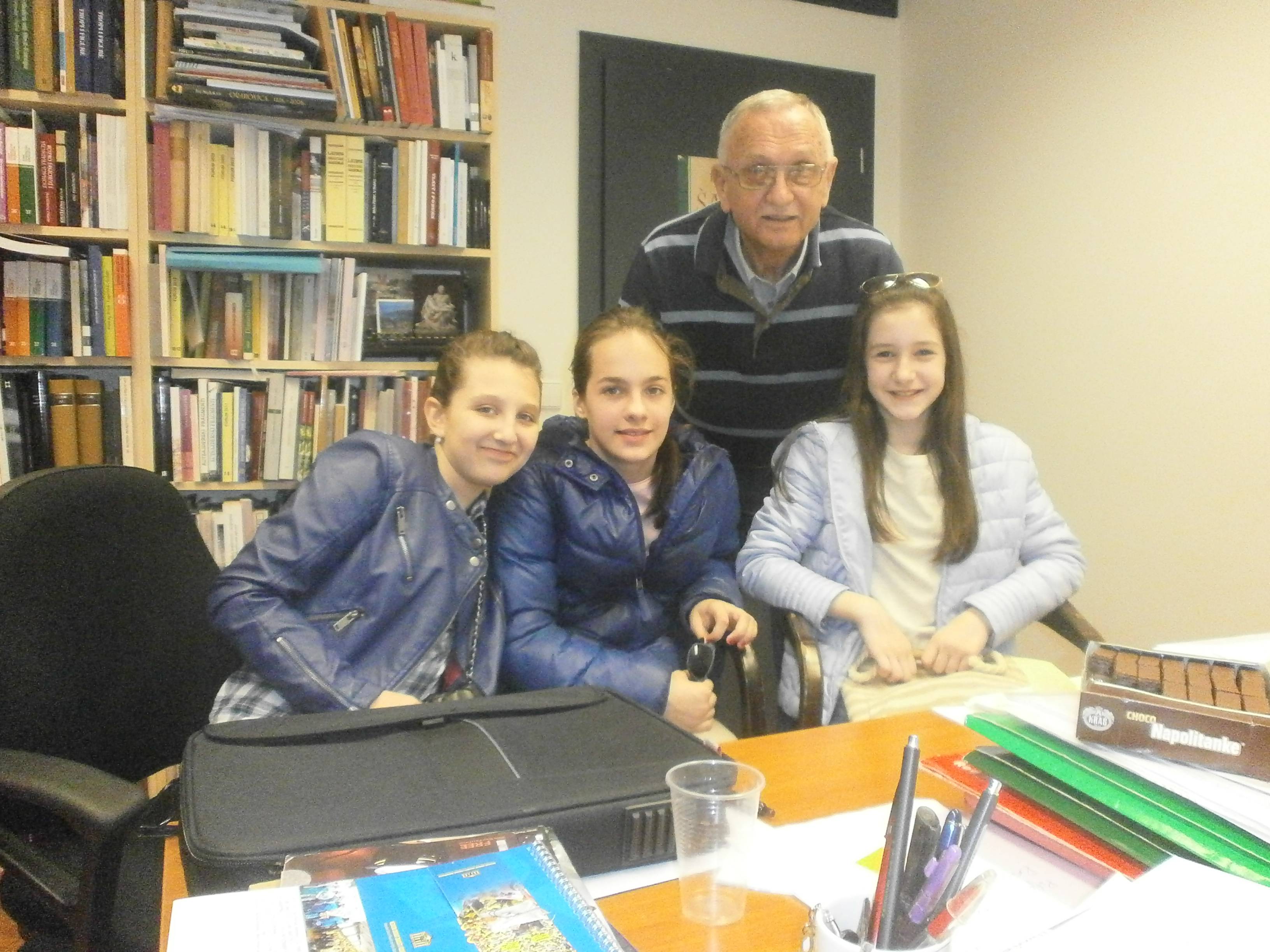 U petak, 20. ožujka 2015. godine , učenice petog a razreda Helena Blažević, Marija Klara Grlić, Nika Lokmić te njihova učiteljica hrvatskoga jezika Ivana Šavuk posjetile su Filozofski fakultet u Zagrebu gdje ih je ugostio književnik Pavao Pavličić.