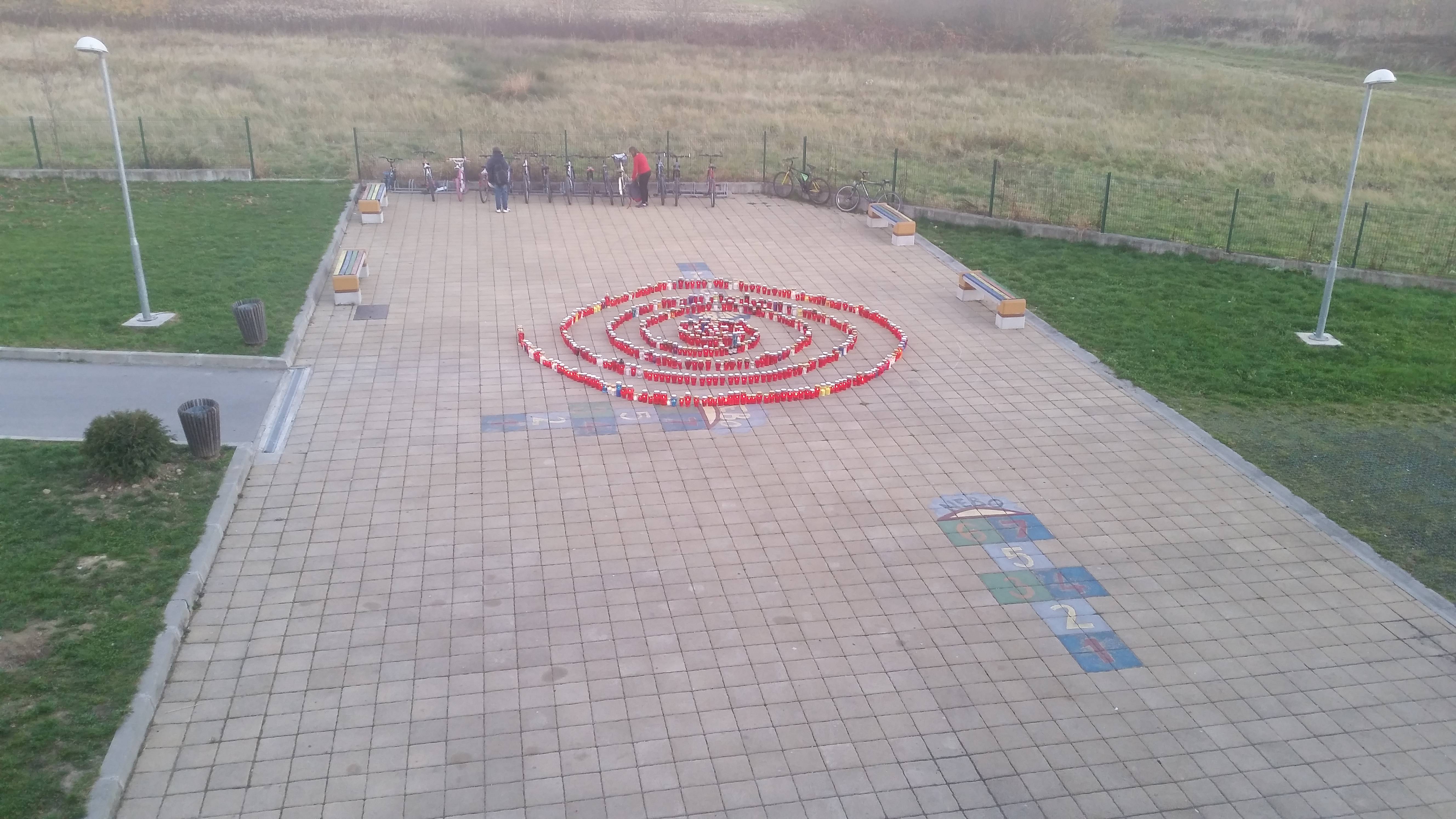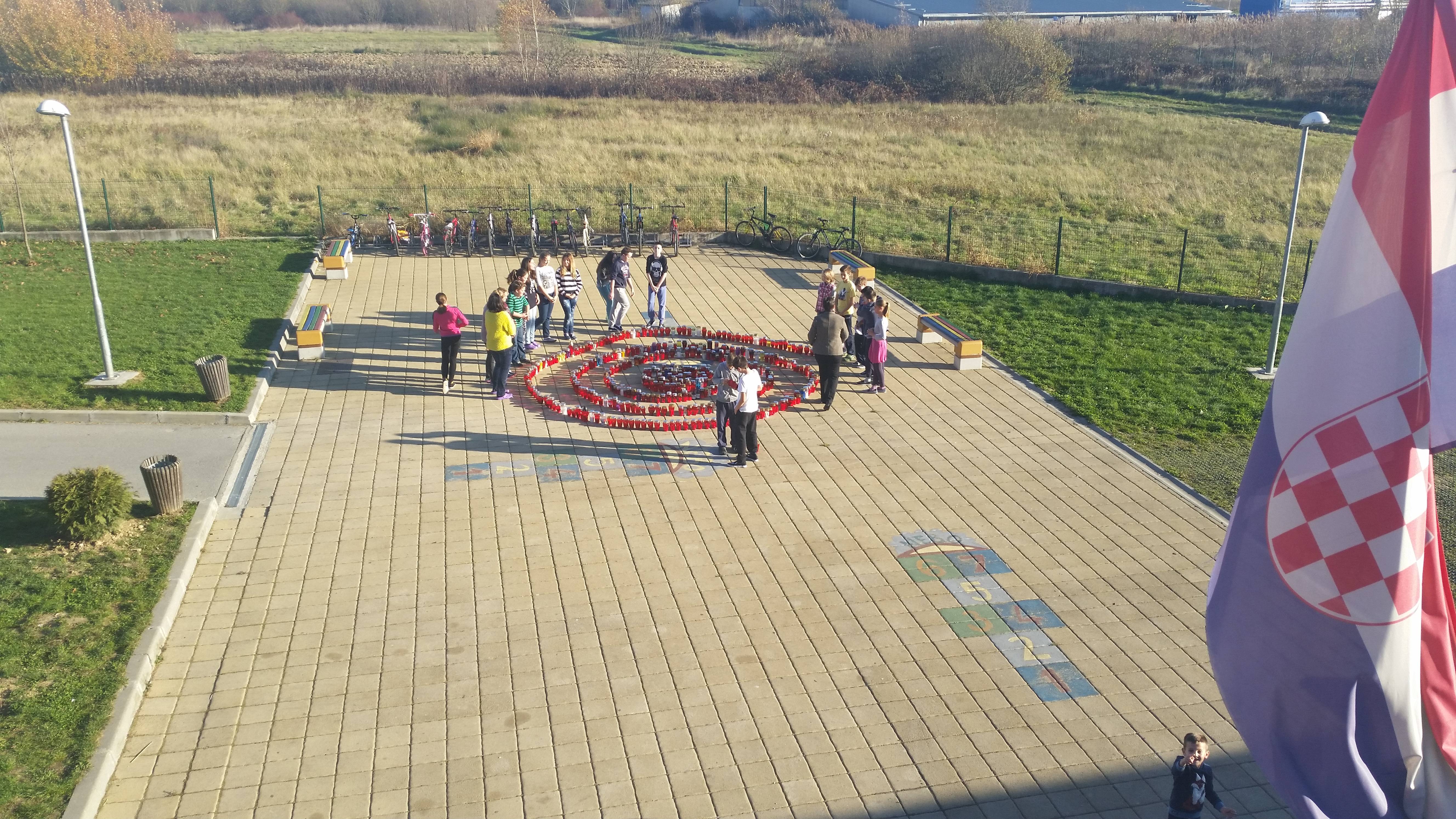 Na današnji dan sjećamo se žrtve koju je Vukovar podnio u Domovinskom ratu prije 24 godine. Dostojanstveno smo obilježili 18. studenoga, Dan sjećanja na žrtvu Vukovara, prigodnim plakatima koji su se mogli vidjeti na hodnicima naše škole. Učenici i djelatnici naše škole zapalili su lampaše i slagali ih u simboličan oblik -spiralu. Ovaj oblik podsjeća na onaj koji se može vidjeti u Spomen-domu „Ovčara“ gdje se nasred prostorije nalazi vrtlog, čiji središnji dio čini svijeća, a u koji „odlaze“ imena svih pogubljenih žrtava na Ovčari. Spomen-dom „Ovčara“ otvoren je 20. studenoga 2006. godine u hangaru gdje je pogubljeno 261 žrtva za vrijeme Domovinskog rata.