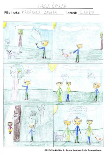 U sklopu festivala dodijeljene su i nagrade za najbolje dječje stripove na temu nekog književnog djela. Ponosni smo što je naša Kristijana Zavada, učenica 2. razreda, osvojila 1. mjesto u kategoriji učenika drugih razreda. Predložak njezinoga stripa bio je Grga Čvarak.