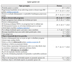 • predaja zahtjeva za redovni upis - od 16.2. do 15.3.