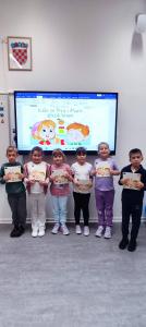 Učiteljica Kata Dvorneković im je pročitala slikovnicu koju su pažljivo slušali te su uz pomoć Dore i Marija naučili što činiti s otpadom .Tako su postali pravi mali znalci o hrani koji će svoje znanje dalje podijeliti i s roditeljima, braćom i sestrama čitajući slikovnicu kod kuće.
