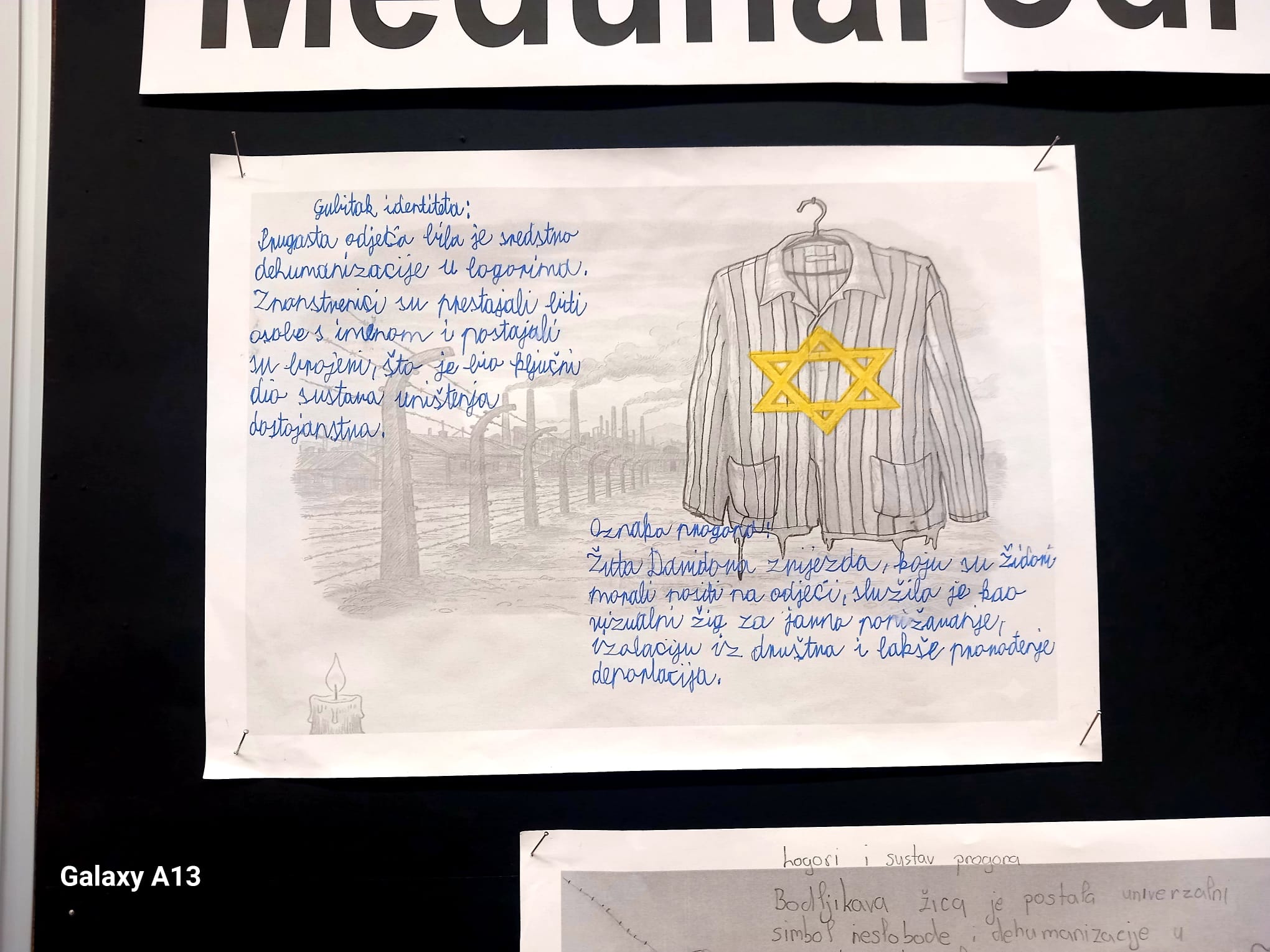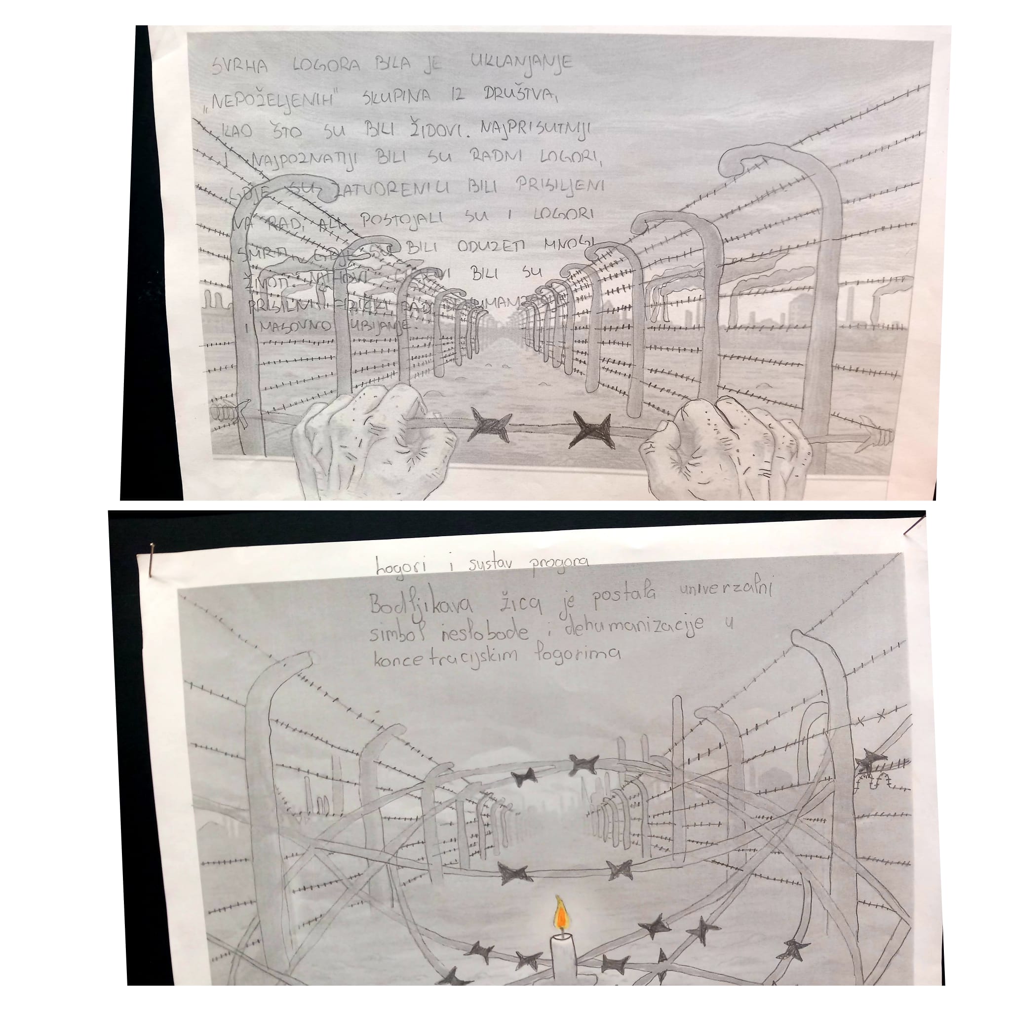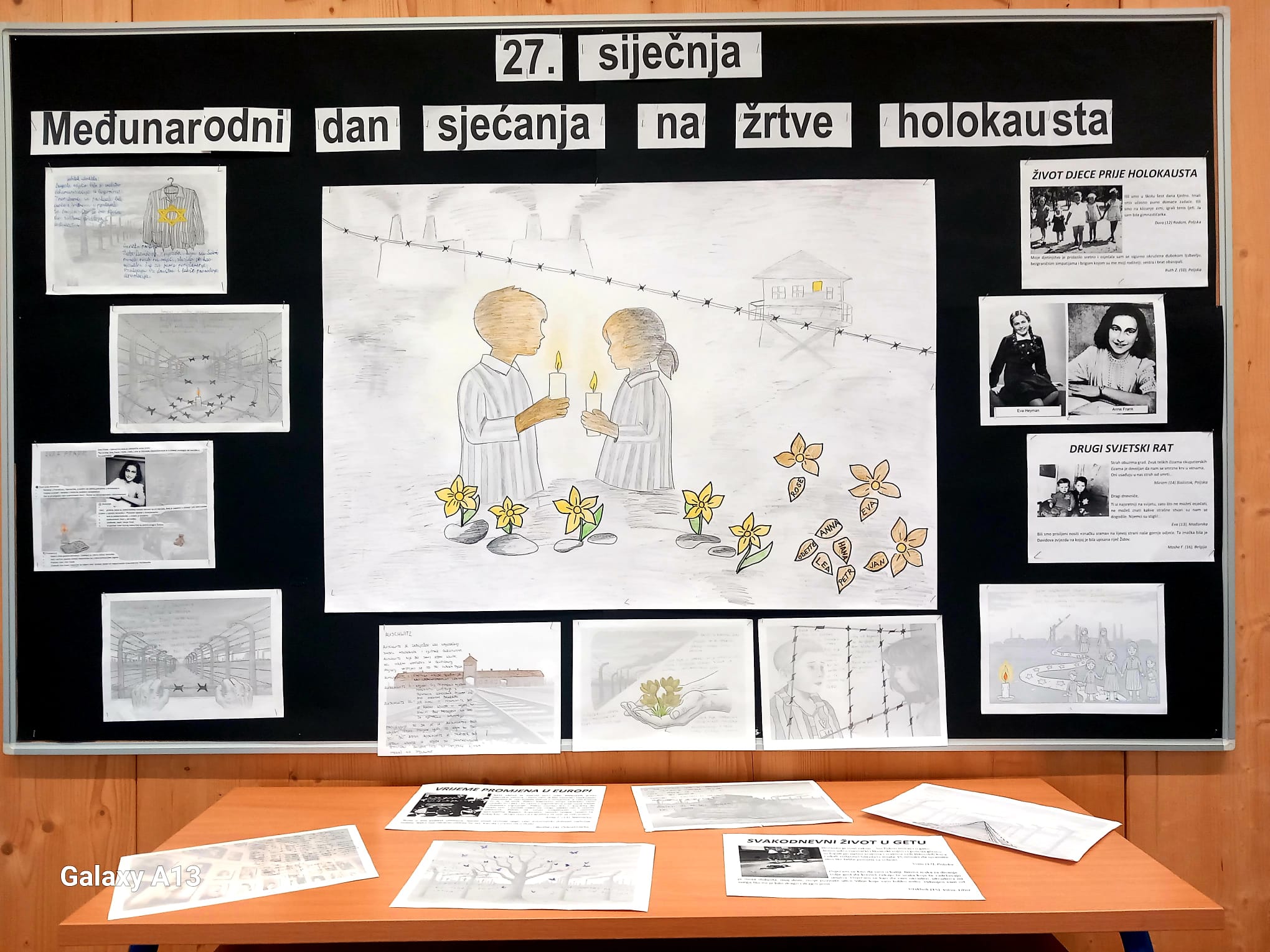 Učenici osmog razreda obilježili su ovaj dan kroz istraživački rad i razgovor. Čitajući zapise iz dnevnika, ali i istražujući život u koncentracijskim logorima, upoznali su se s teškim uvjetima zatočeništva te simbolima holokausta, poput logoraške prugaste pidžame i žute Davidove zvijezde, koji su postali trajni podsjetnici na patnju i oduzimanje ljudskog dostojanstva. Posebna se pozornost posvetila razumijevanju značenja tih simbola i poruka koje oni nose i danas.