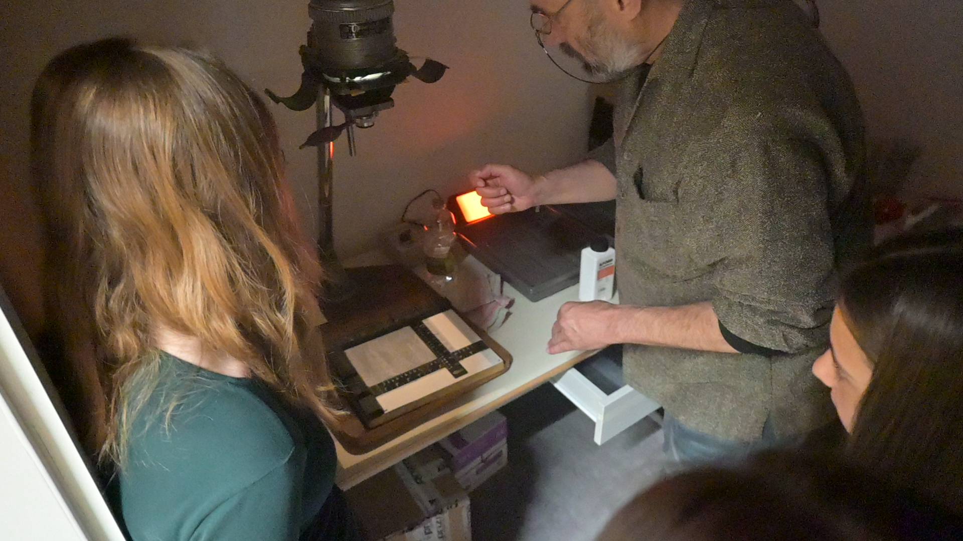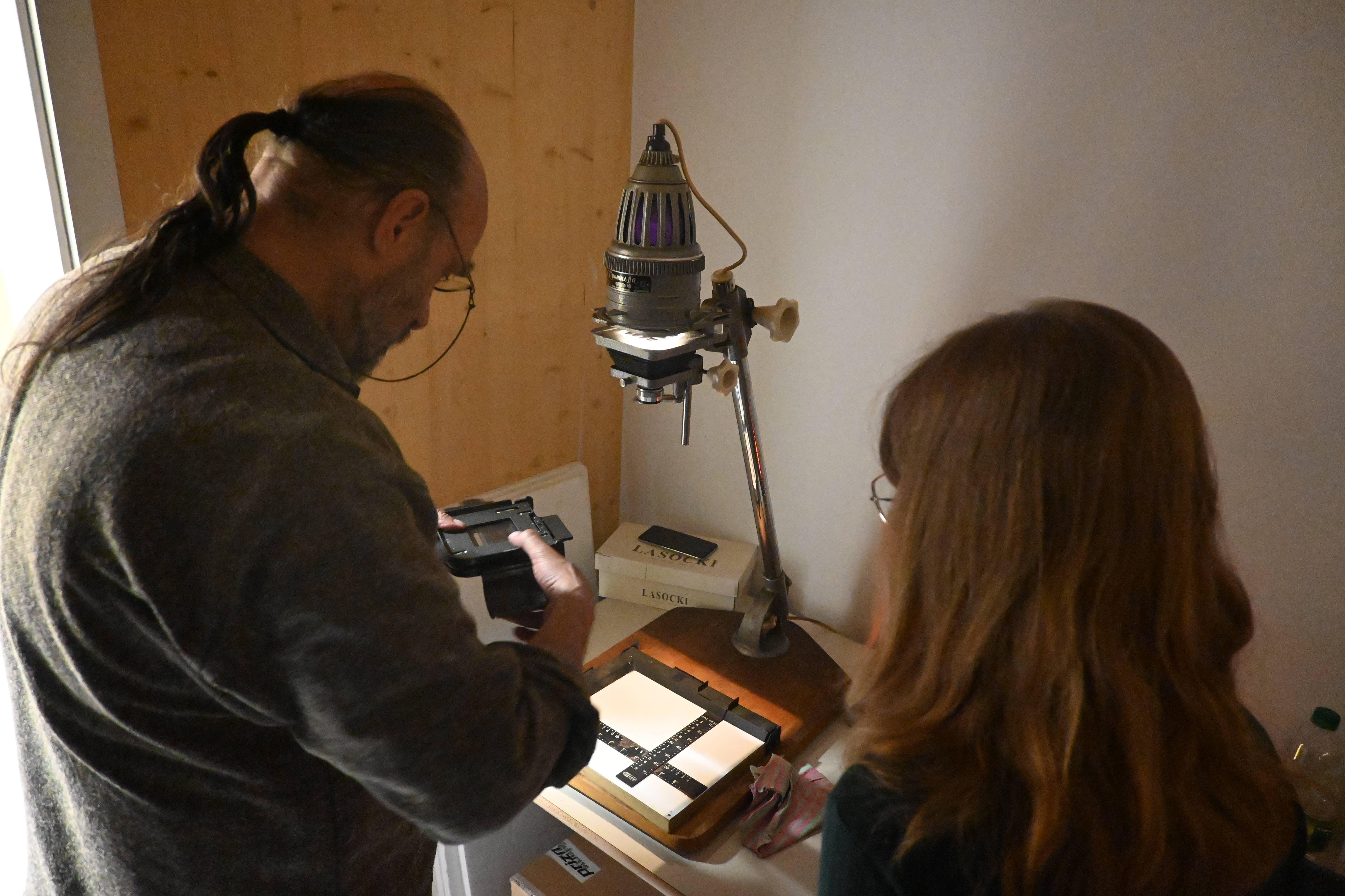 Gospodin Arbe je drage volje prihvatio biti dijelom našeg projekta pa je tako, kao iznimno važan prvi korak u našem igranju crno.bijelom fotografijom, održao kratko, ali iscrpno i zanimljivo predavanje o korištenju nekoliko desetaka godina stare opreme te postupku izrađivanja takvih fotografija.