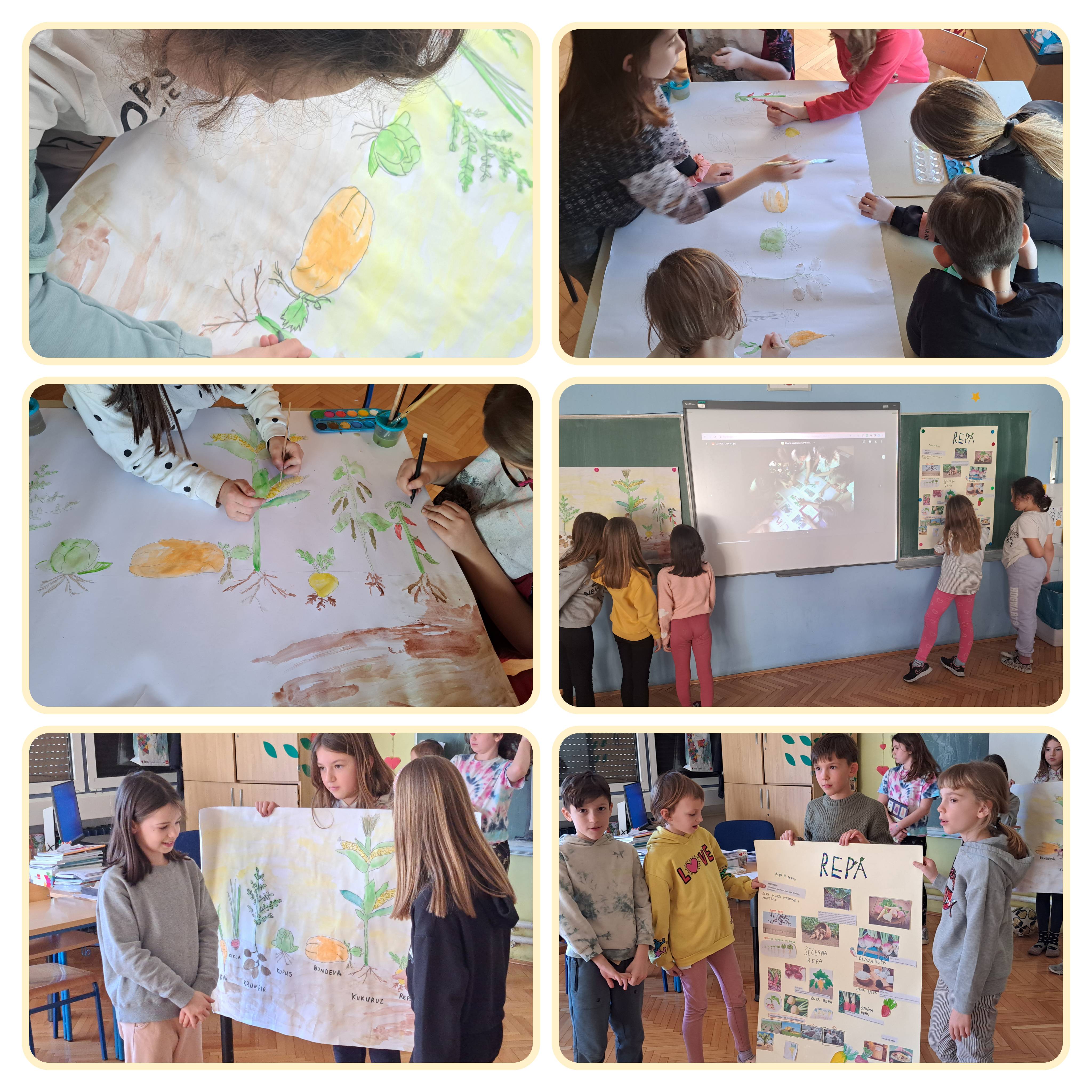 Učenici 2. b razreda tijekom Produženog boravka s učiteljicom Anom Filipec, čitali su knjigu Djed i repa Alekseja Tolstoja. Repa koja je zadala mnogo briga glavnim likovima priče, postala je predmet suradničkog istraživanja učenika 2. b razreda. Učenici su putem knjiga i interneta saznali što je repa, odredili su vrste repe, učili su o važnosti repe za ishranu ljudi i stoke, saznali su kako se proizvodi šećer iz šećerne repe, pronašli su recepte s repom, usporedili su rast i razvoj repe u odnosu na druge biljke (mrkvu, krumpir, kupus, bundevu, grah, papriku, kukuruz), a sve istraženo prikazali su slikom i riječju na plakatima. Istražene podatke o repi pridodali su ranije istraženim podatcima o cikli. Zatim su usporedili rast i razvoj ranije posijane cikle s rastom graha. Svoj rad učenici su prezentirali učenicima drugih razreda naše škole.