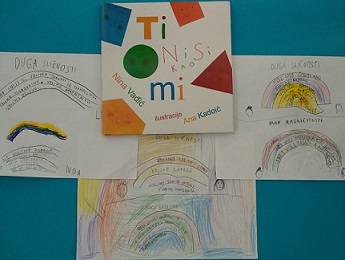Učenici 2.a i 2.b razreda na radionici su slušali priču "Ti nisi kao mi" hrvatske autorice Nine Vađić, a koja poučava najmlađe o toleranciji, lijepom ponašanju prema svima i radosti prijateljstva. Nakon čitanja slikovnice, učenici su u parovima izrađivali Dugu sličnosti i razlika.
