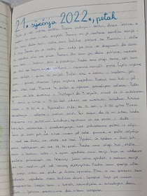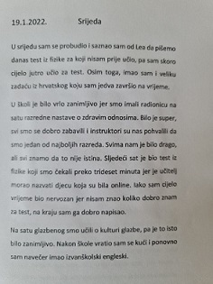 Učenici sedmih razreda ove školske godine su na satovima hrvatskog jezika čitali i obrađivali dnevnik kao književnu vrstu. Nakon čitanja lektrinih djela Dnevnik malog Perice te Tajni dnevnik Adriana Molea, učenici su dobili zadatak da svoju svakodnevnicu i dogodovštine zapisuju u obliku sedmodnevnih dnevničkih zapisa. Zadatku su pristupili ozbiljno i kreativno te su tako nastali zanimljivi dnevnici naših sedmaša.