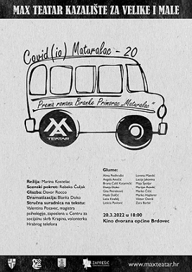 Max teatar u suradnji s Općinom Brdovec u nedjelju, 20.03.2022. godine, u 18:00 sati u Kino dvorani Općine Brdovec za mlade će odigrati predstavu Covid(io) Maturalac -20.