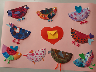Drugoga dana čitali smo priču Ivančice Koprek, Zašto se na Valentinovo ptičice žene? Poslije razgovora o priči i iznošenja dojmova, uz opuštajuće zvuke instrumentalne skladbe Zimska pjesma ptica, učenici su izradili zaljubljene ptičice. Vodenim bojama oslikali su papirnate tanjure, a zatim su ih ukrasili kolažem i plišanom žicom. Igrom na školskom igralištu Cure love dečke! zaokružili smo dan.