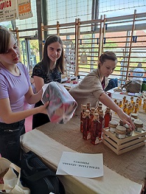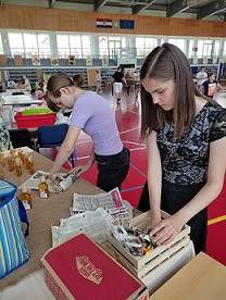 Na lijepo uređenom izložbenom prostoru, učenice Lana i Medina su vrlo hrabro i uspješno, pred stručnim povjerenstvom, predstavile našu zadrugu i praktično pokazale kako su nastajale naše lijepe bočice.