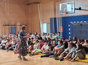 U četvrak, 2.6. 2022. našu je školu posjetila spisateljica Jasminka Tihi-Stepanić. Književnom susretu prisustvovali su učenici petih i sedmih razreda. Susret je bio vrlo sadržajan i poticajan, a učenici su imali mnoštvo zanimljivih pitanja.