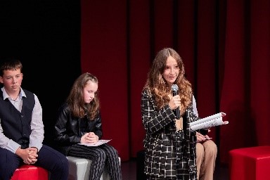Naše učenice uspješno su predstavile sebe, svoj zavičaj i svoju školu recitirajući stihove svojih pjesama na zvučnoj zavičajnoj riječi.