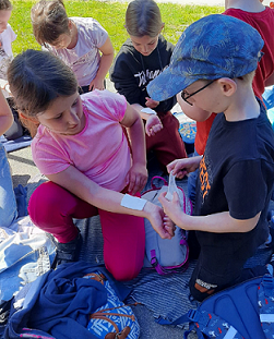 Drugu radionicu održali su djelatnici Crvenoga križa. Djeca su učila kako postupiti u hitnim situacijama, kako zaustaviti krvarenje iz nosa te previti