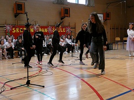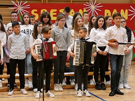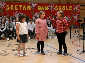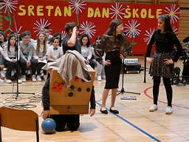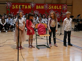 Svojoj školi u čast učenici su pjevali, govorili stihove, plesali…., a na kraju priredbe učenicima su se pridružile naše učiteljice, Fijolice, te svi zajedno otpjevali Himnu škole.