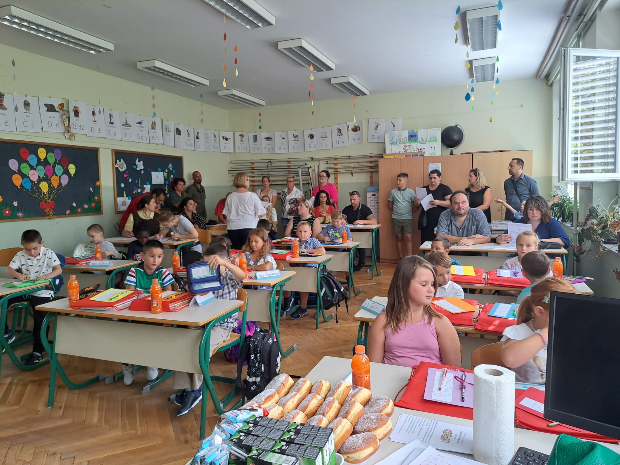 U pratnji svojih učiteljica Gordane Papac i Kristine Kresnik smjestili su se u učionice te sjeli u svoje školske klupe. I pokoji roditelj našao je mjesto u njima i prisjetio se svojih školskih dana.