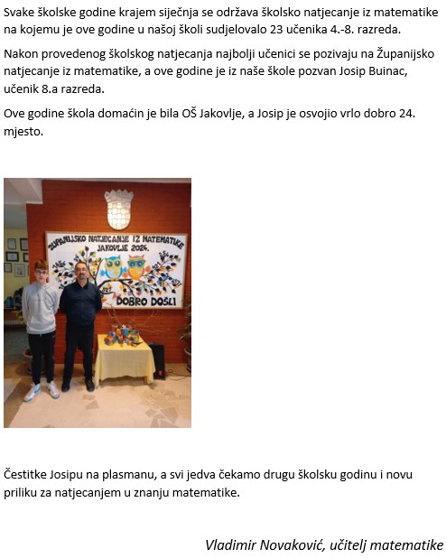 ŽUPANIJSKO NATJECANJE IZ MATEMATIKE