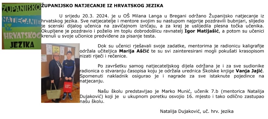 ŽUPANIJSKO NATJECANJE IZ HRVATSKOG JEZIKA