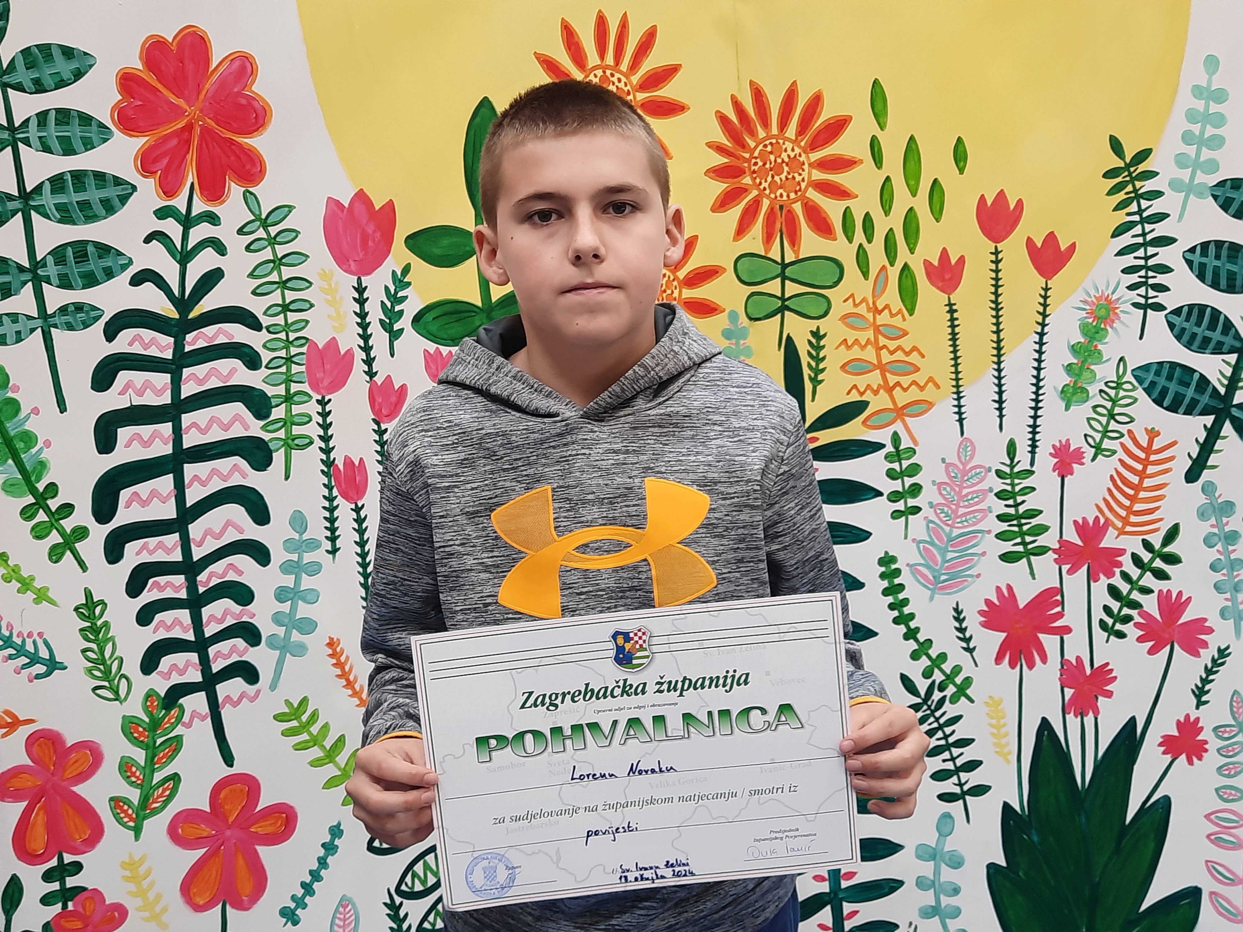 U ponedjeljak, 18.03. učenik Loren Novak, učenik 7.a razreda predstavljao je našu školu na Županijskom natjecanju iz povijesti koje se održavalo u OŠ Dragutina Domjanića, Sv. Ivan Zelina.
