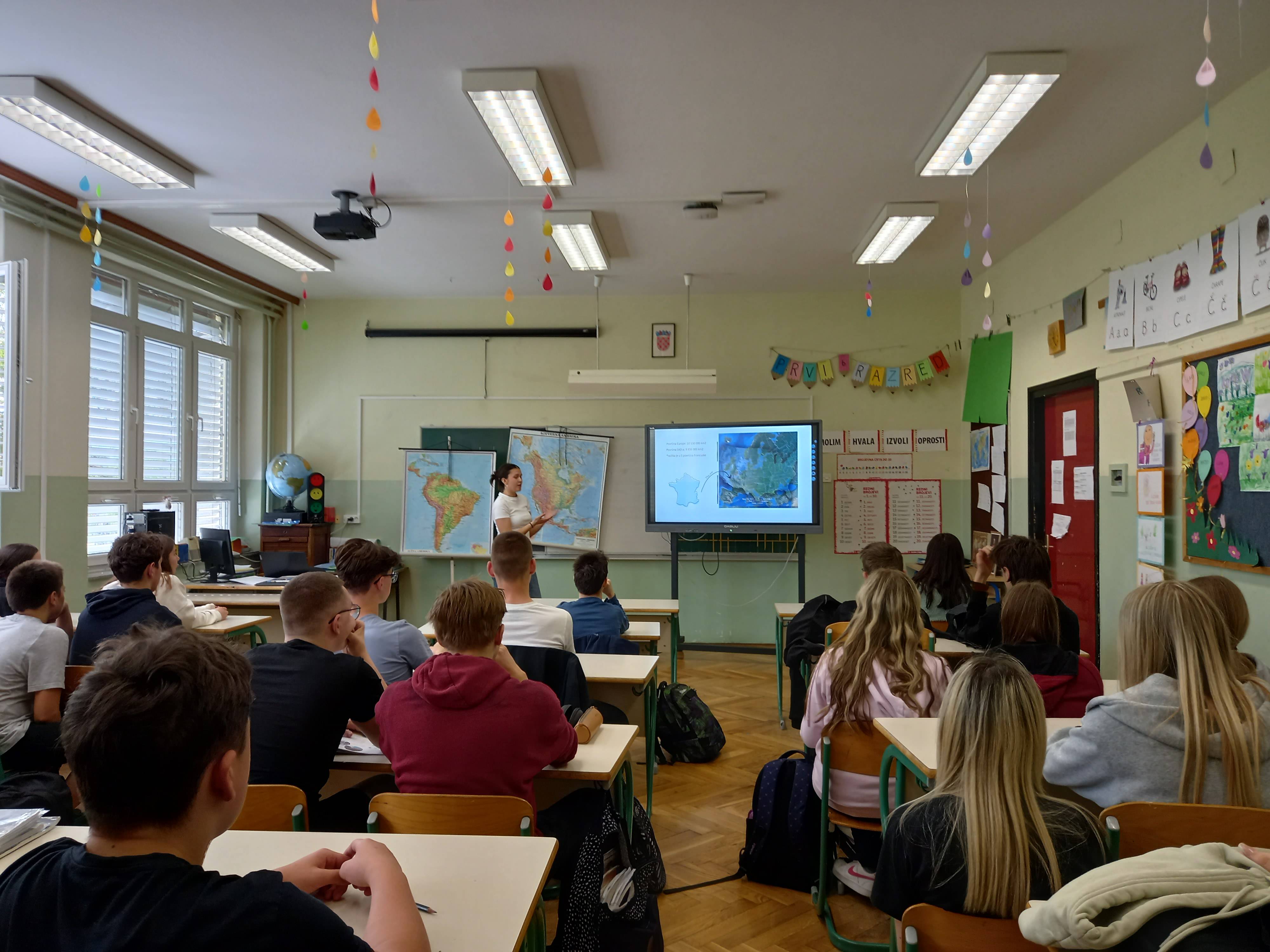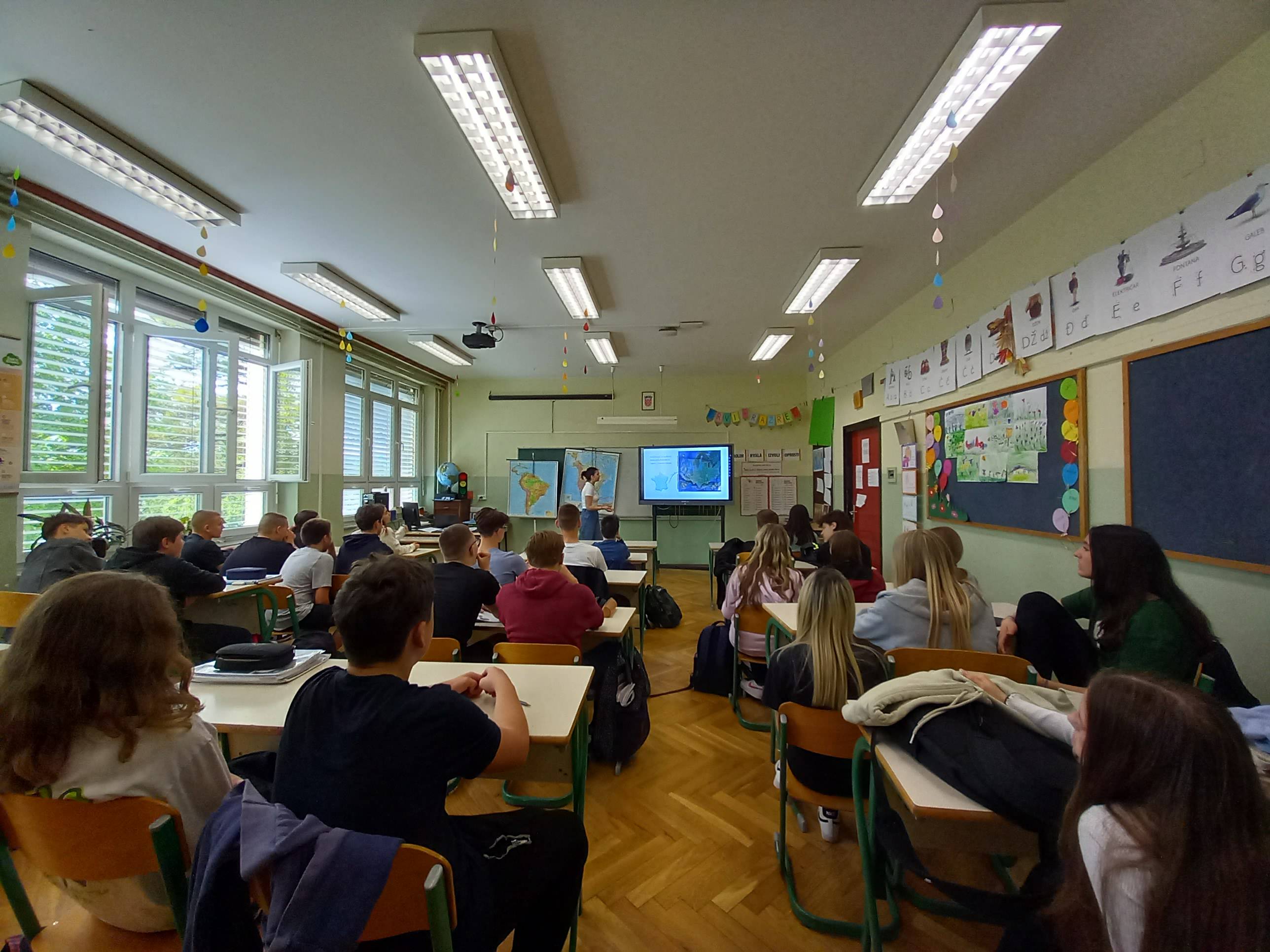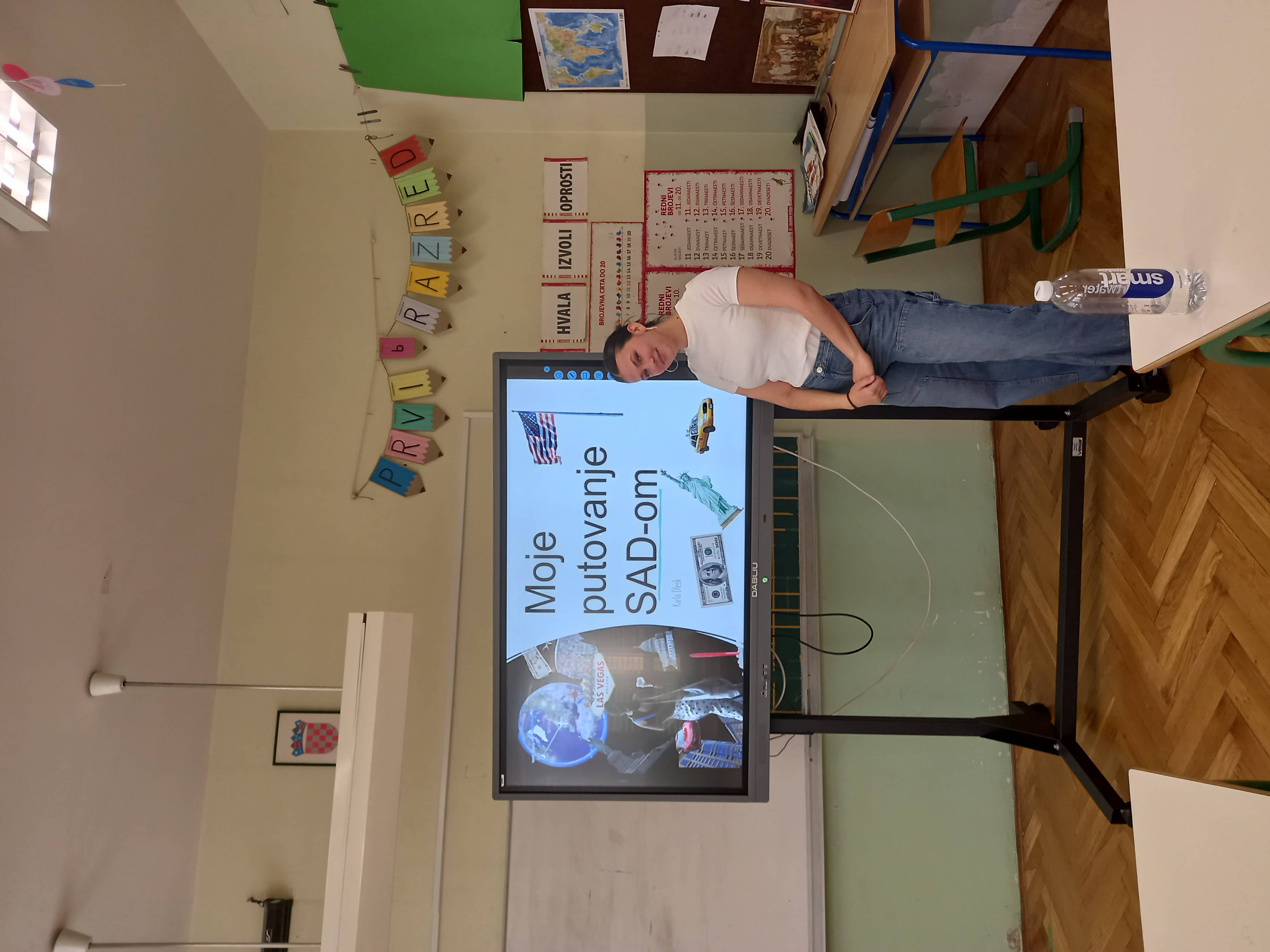 Dana 11. 4. 2024. godine na nastavu geografije i engleskog jezika kao gost predavač stigla je Karla Dlesk, mlada studentica geografije iz Zagreba. Karla je učenicima osmih razreda izložila svoje dojmove života i rada u Sjedinjenim Američkim Državama kroz program Work˛& Travel.