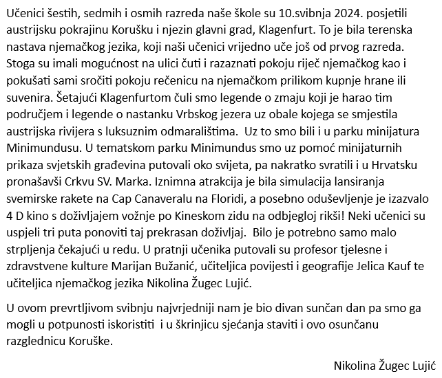 Terenska nastava u Austriju, Minimundus i Klagenfurt